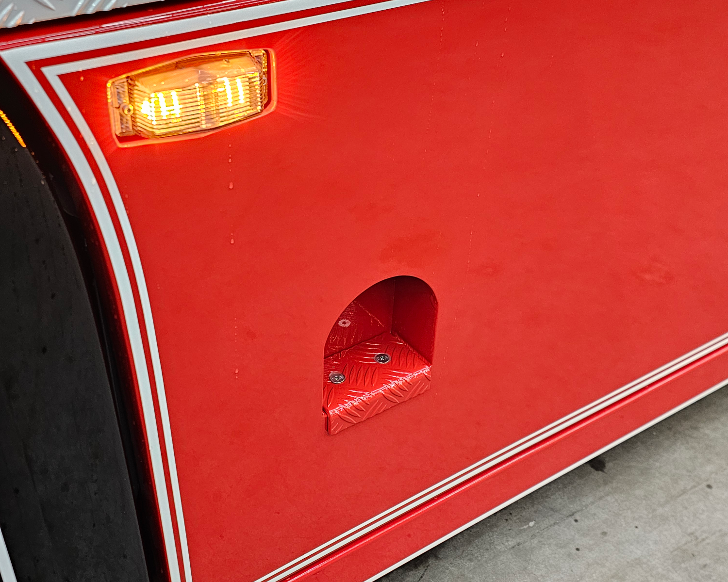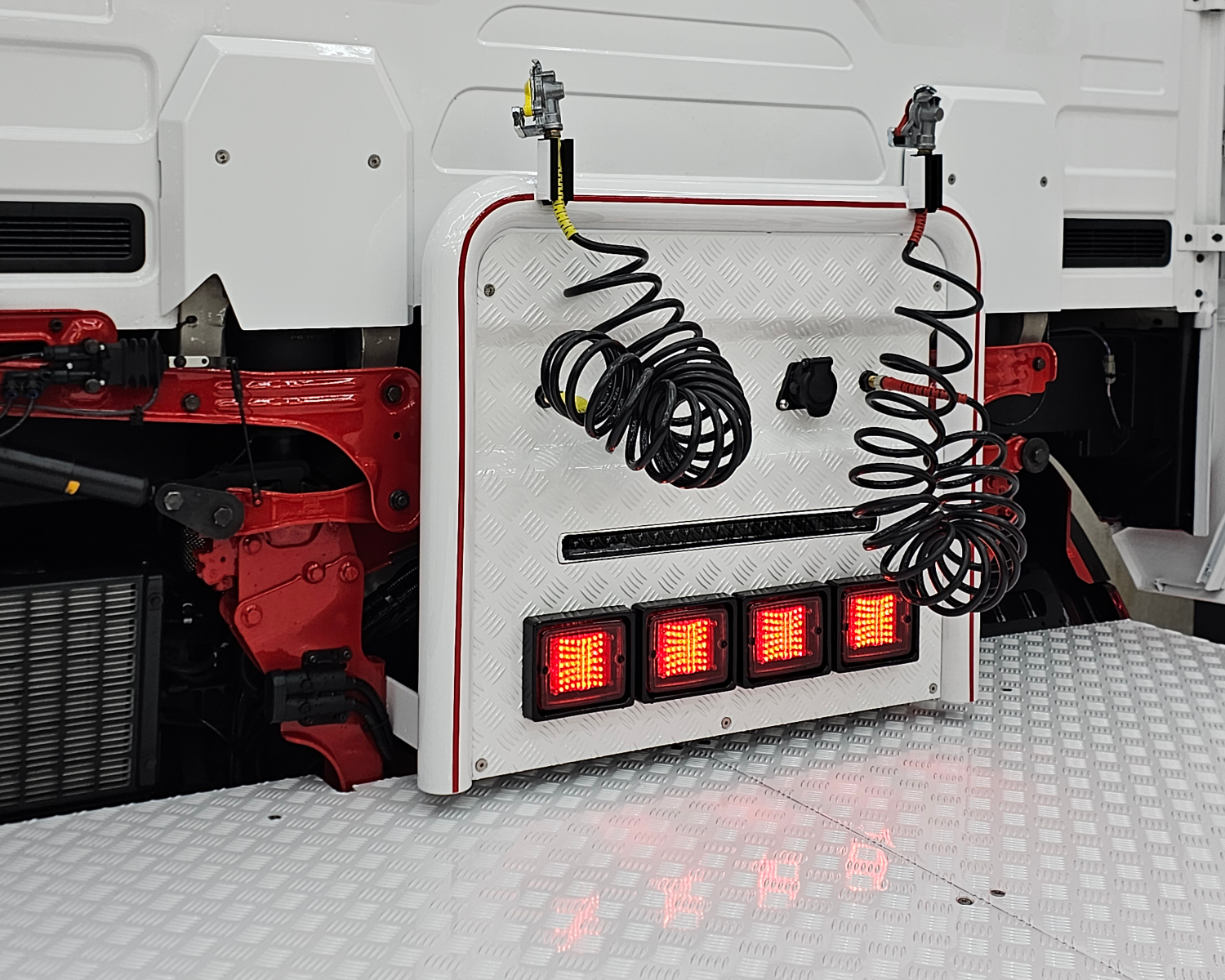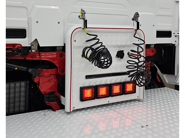 Rvs achterbumper met led verlichting aansluitend aan spatborden