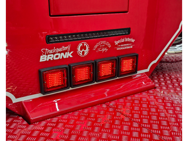 Aluminium zonneklep met ledbar, lichtbak, zwaailampen en @strandslightingdivision verstralers erop