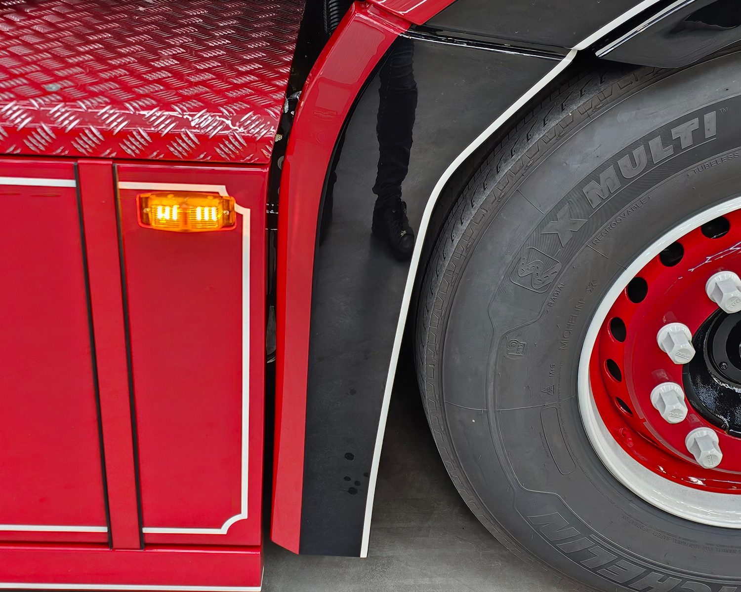 Breedtepaaltjes en werklampen in de bumper/opstap