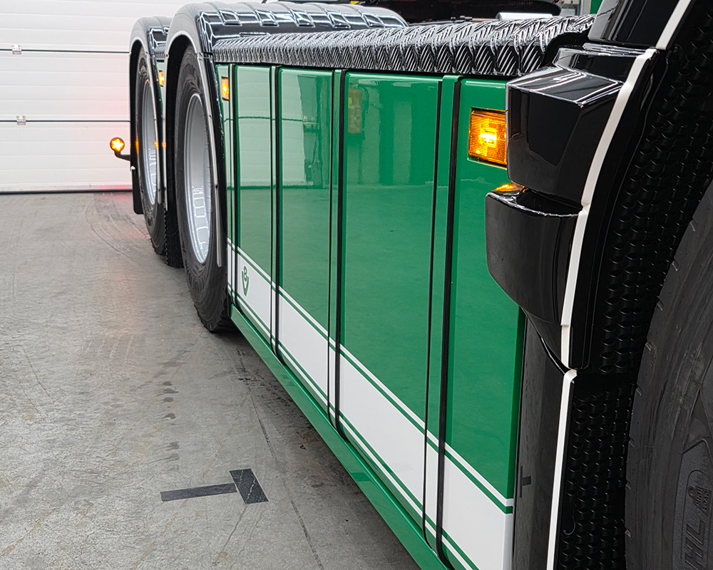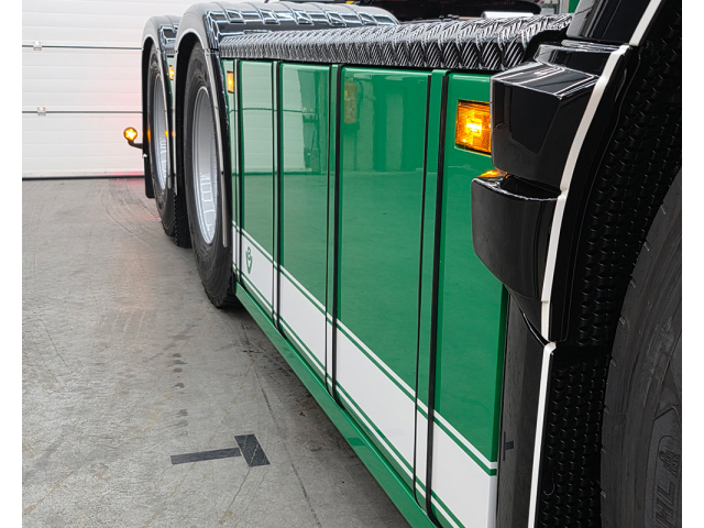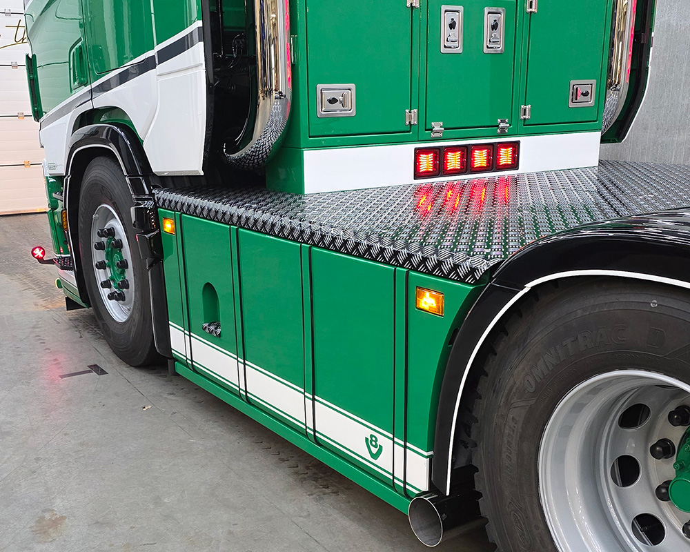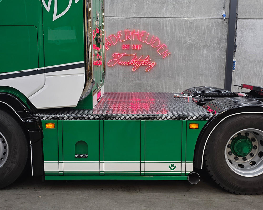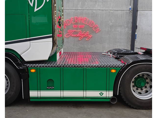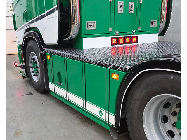 Sideskirts rond gekant met tankbanden en led lampjes in de hoeken