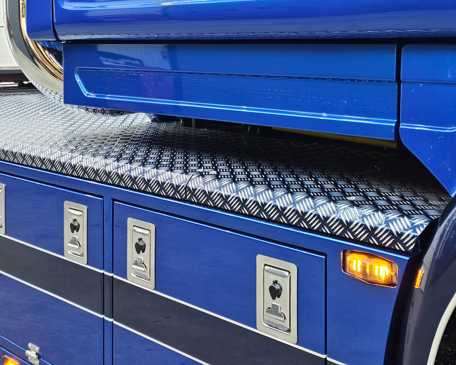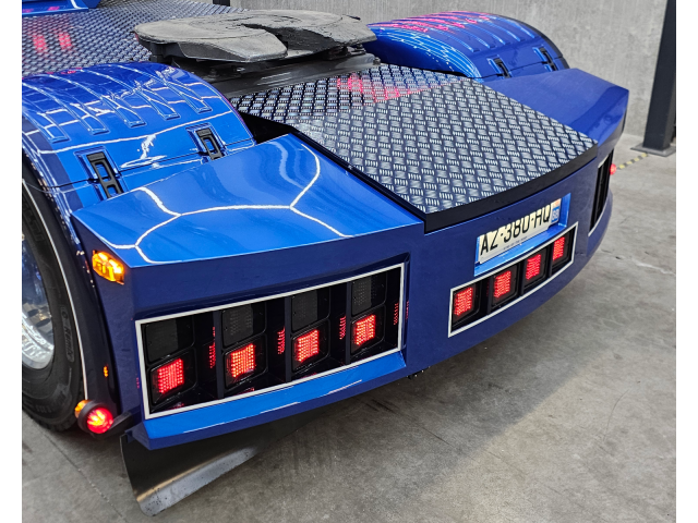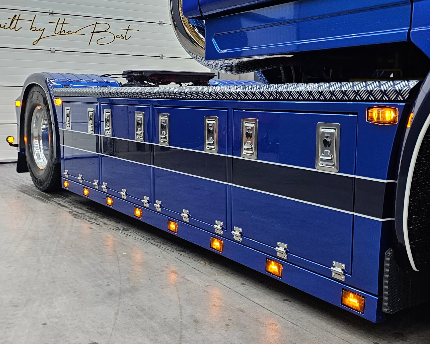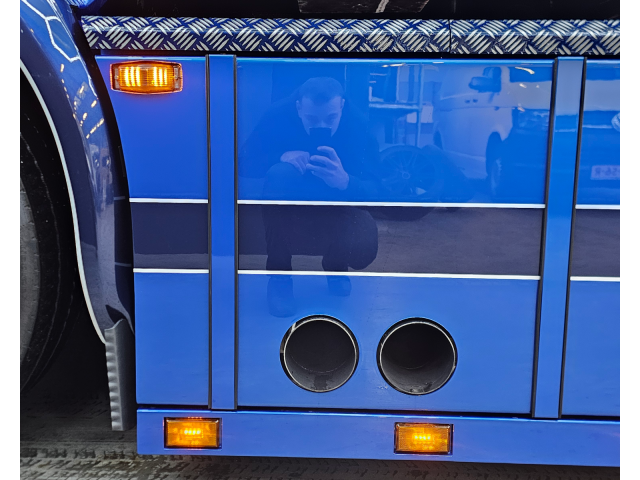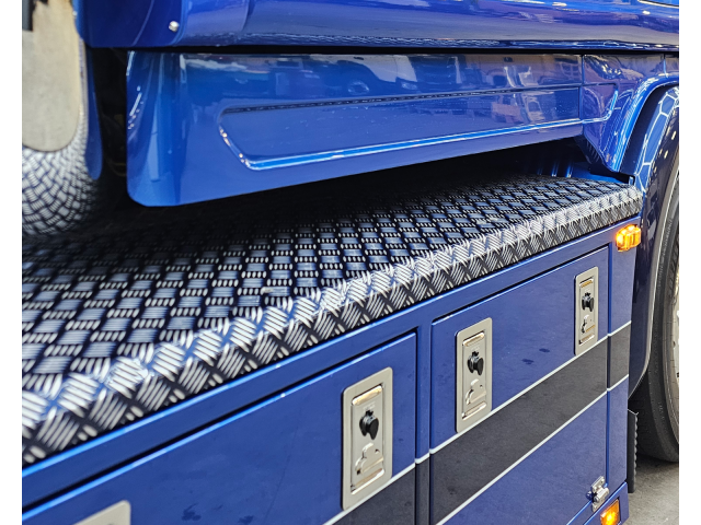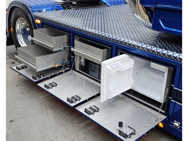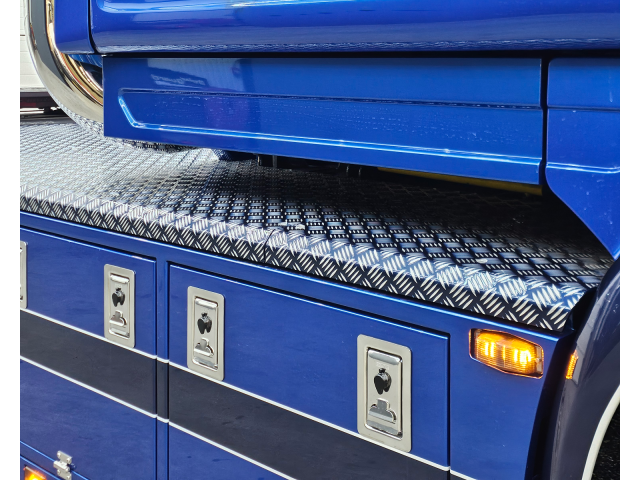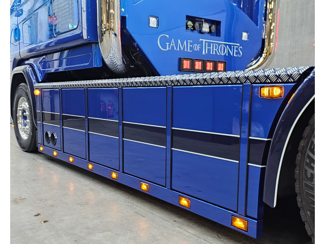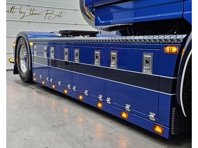 Latten onder de sideskirt en kist met originele Scania lampjes