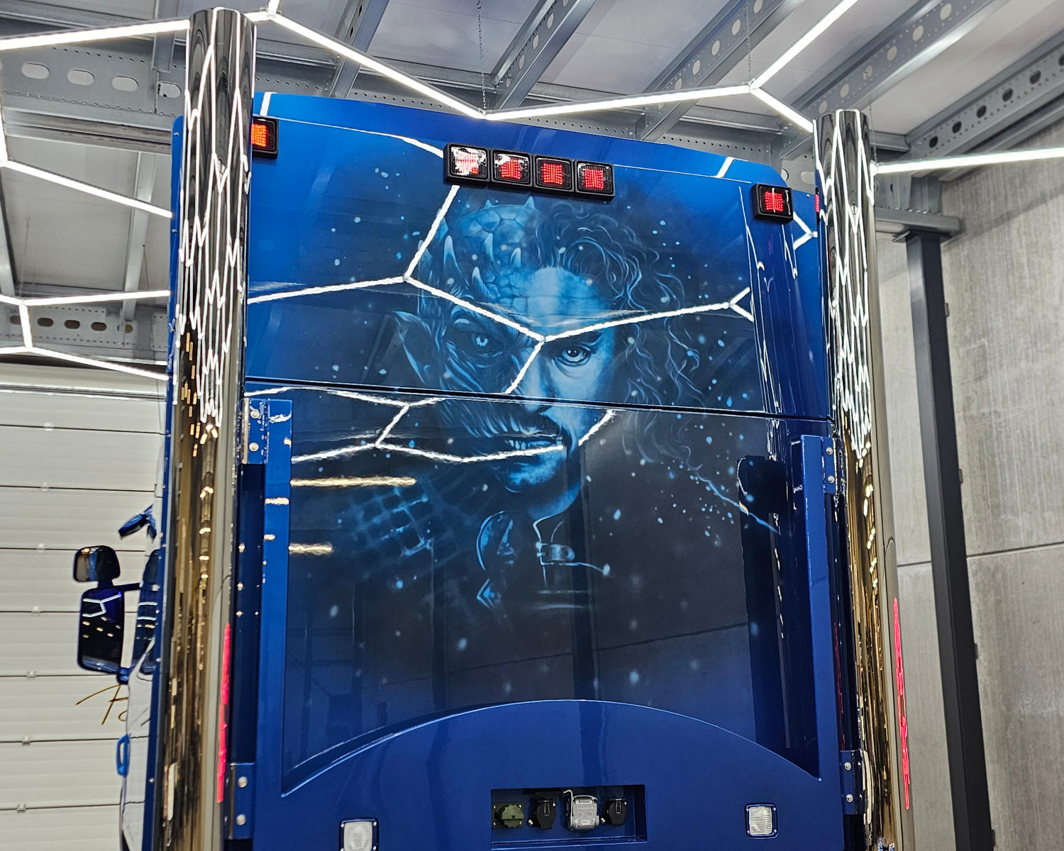 Rvs achterbumper speciaal design, met dark knight led bloklampen