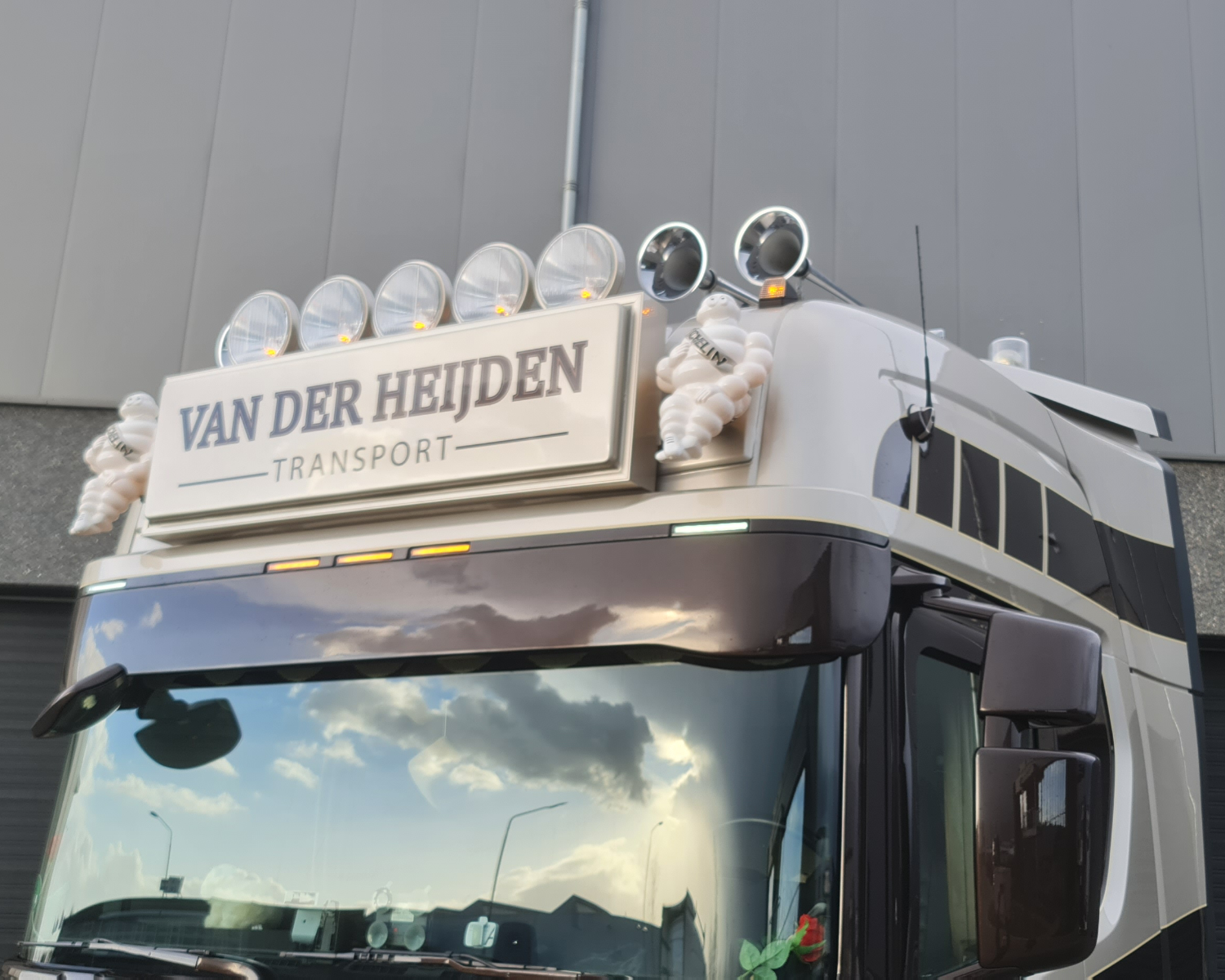 - Lichtbak met Michelinpoppen en 5 Bosch verstralers met led pitten