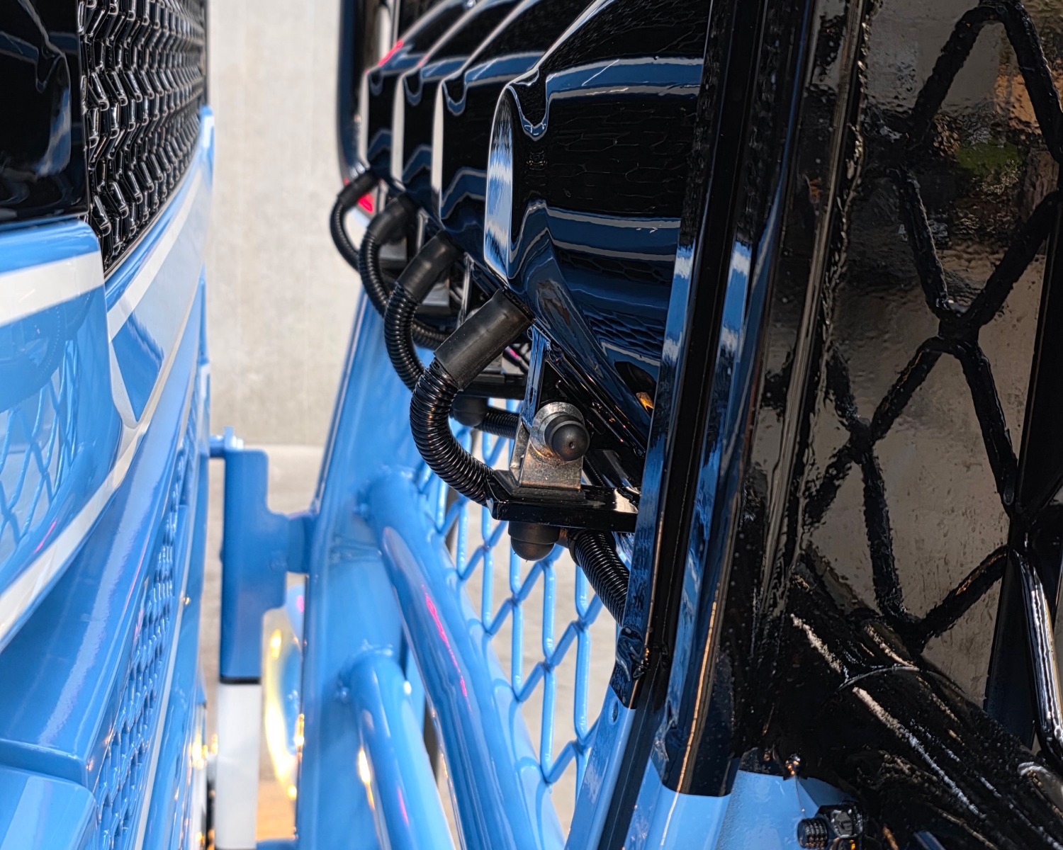 Latten onder de sideskirts met Hella bloklampen en grond verlichting