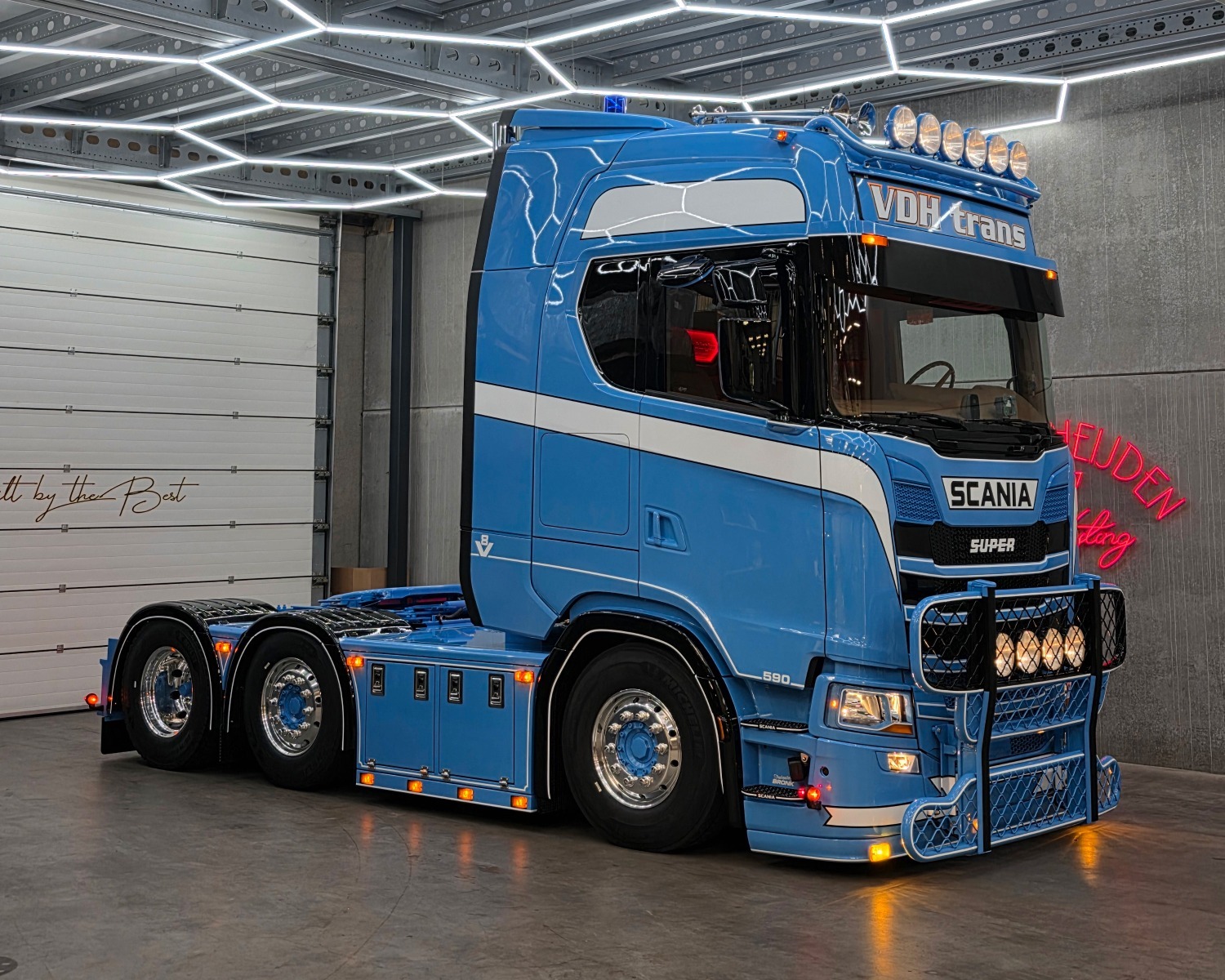 Voor Jonas, van VDHtrans zijn Scania 590s compleet opgebouwd! Parel geworden, mega dik! Jonas bedankt en veel veilige en plezierige kilometers met dit kanon!