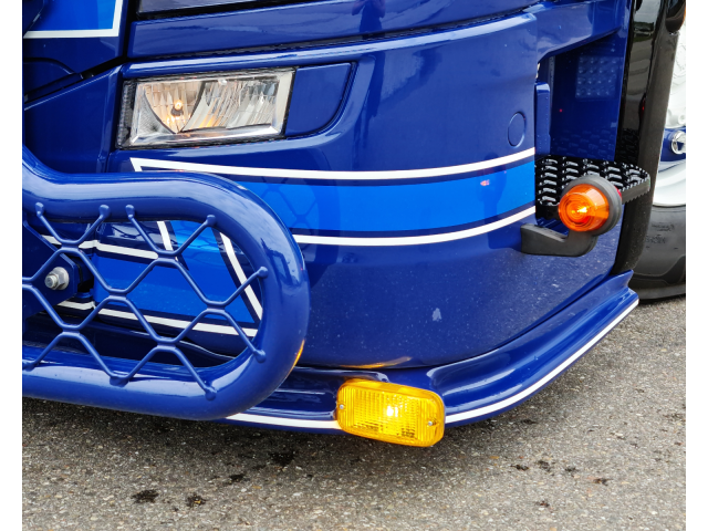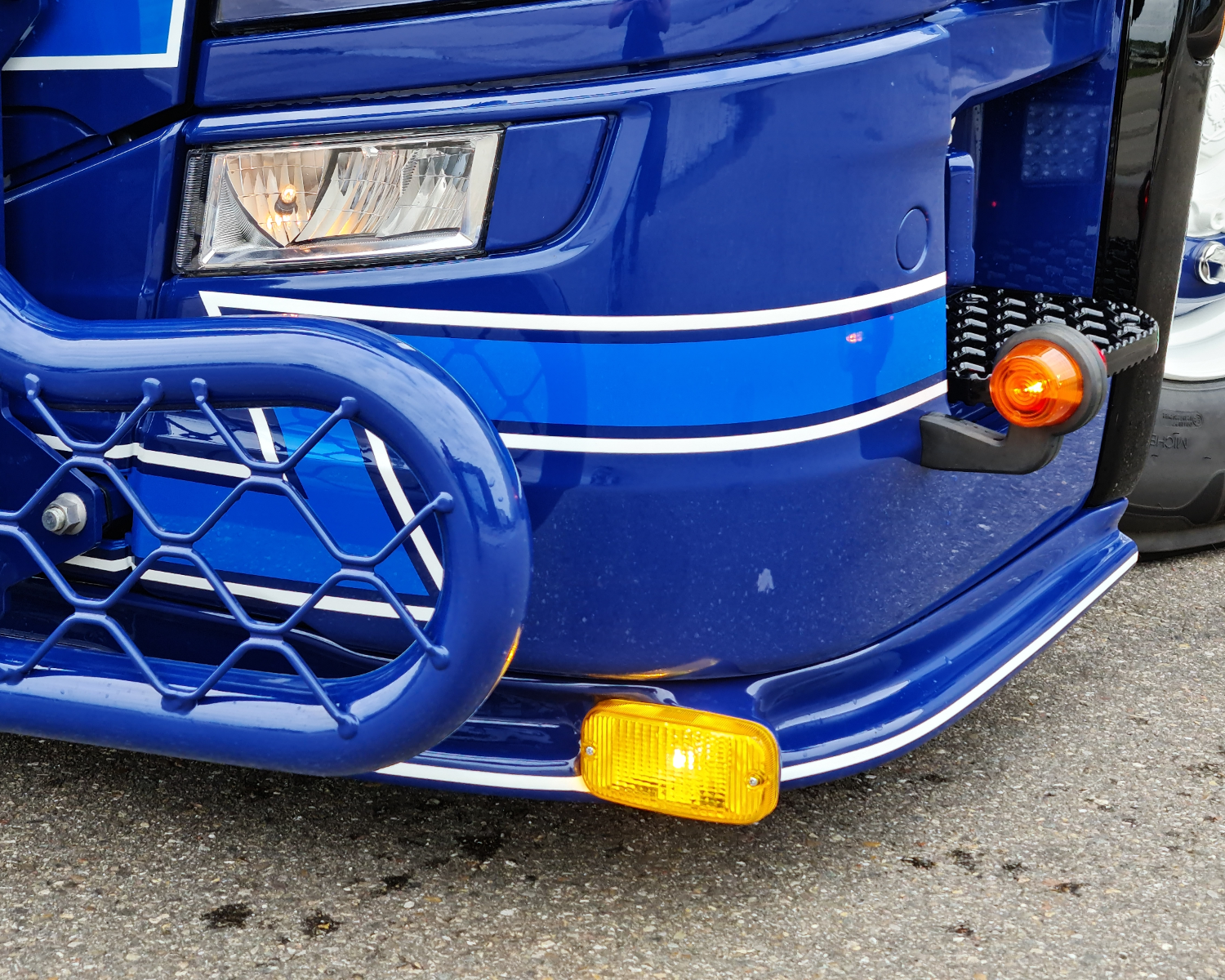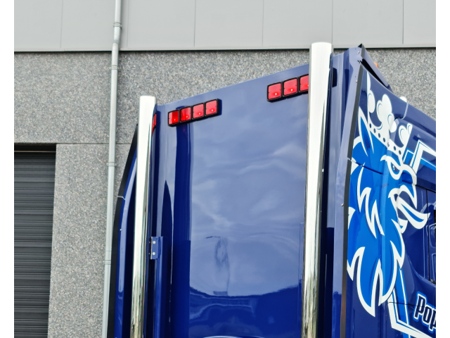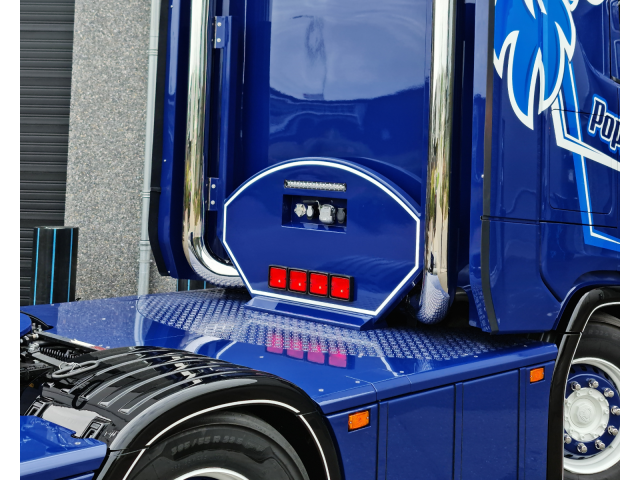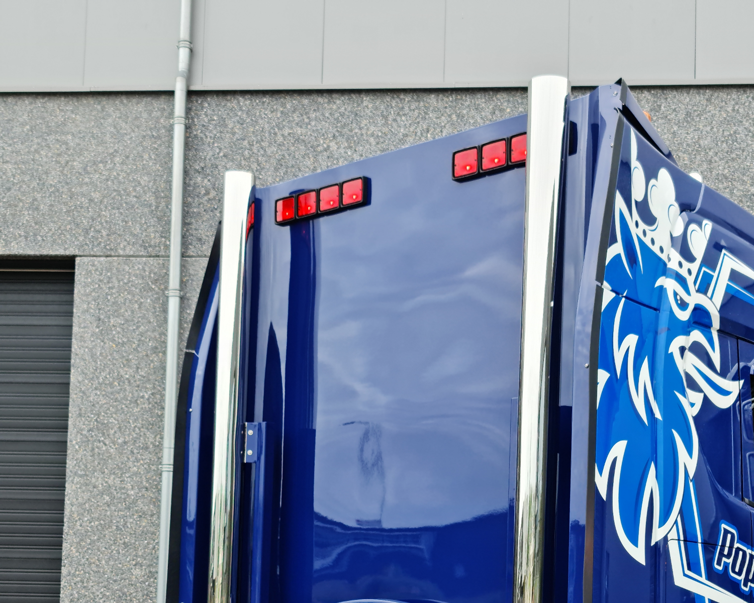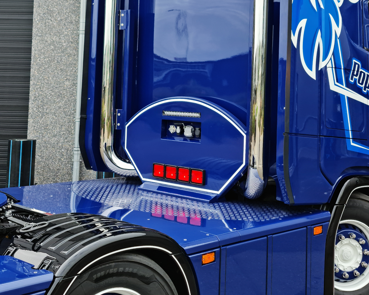 - Achterbumper met bolletjesverlichting aansluitend aan spatbord