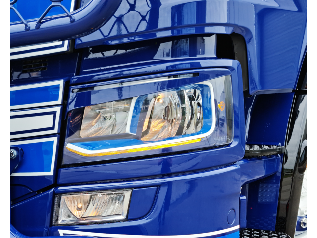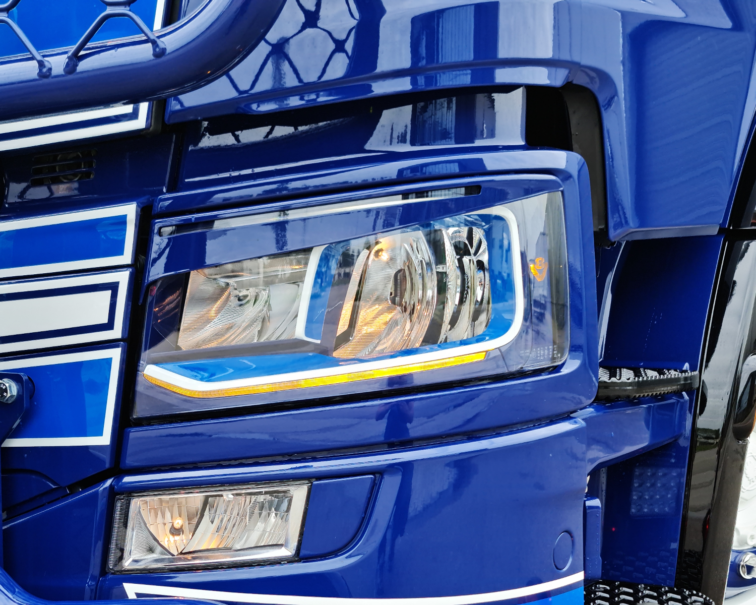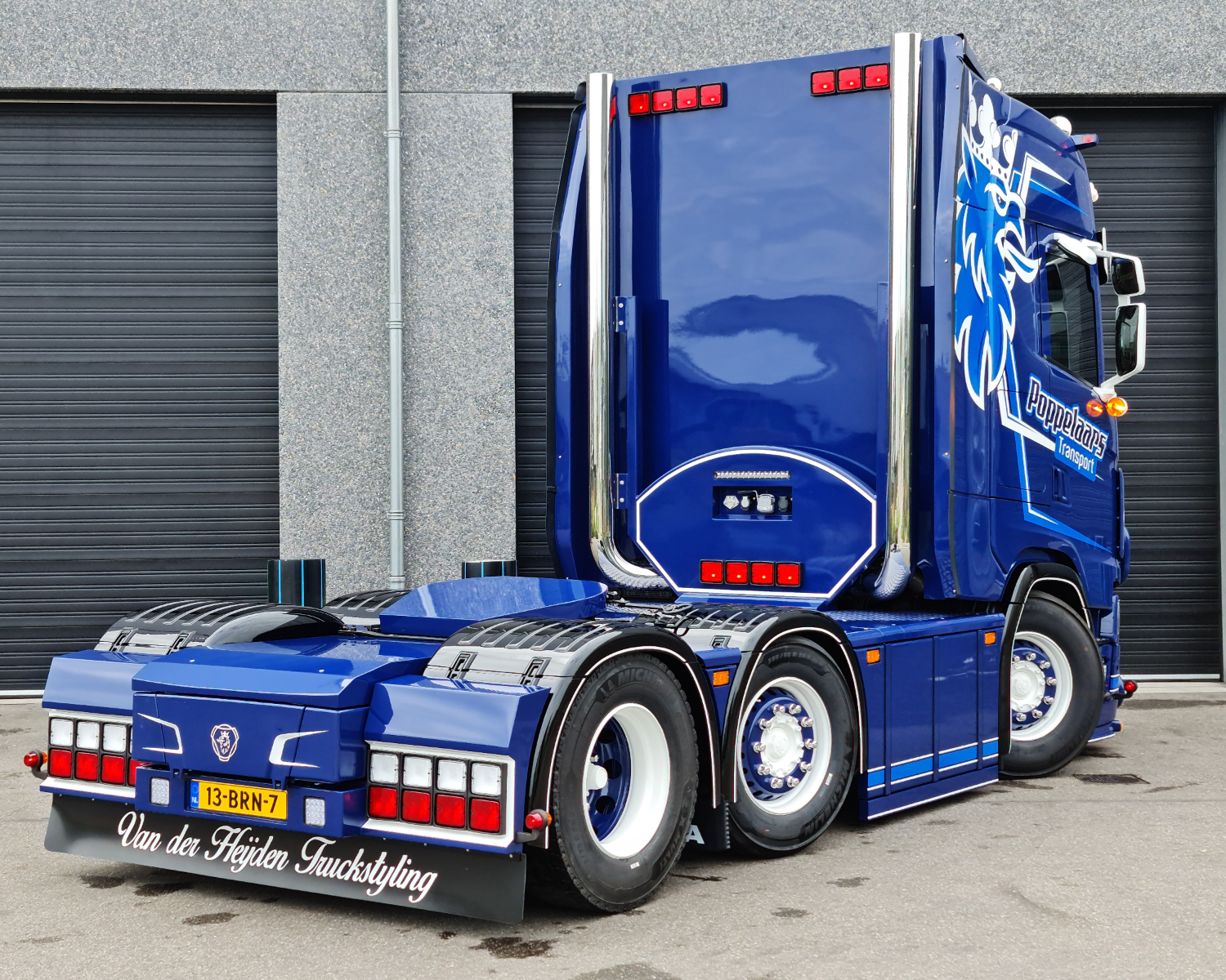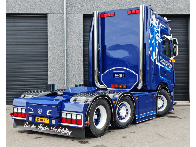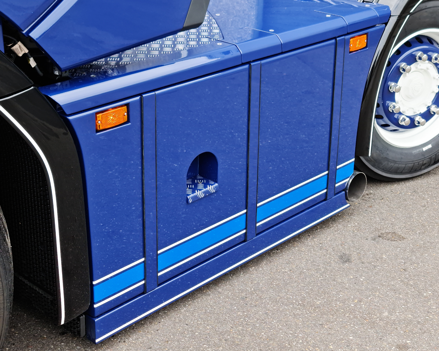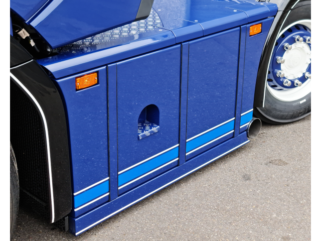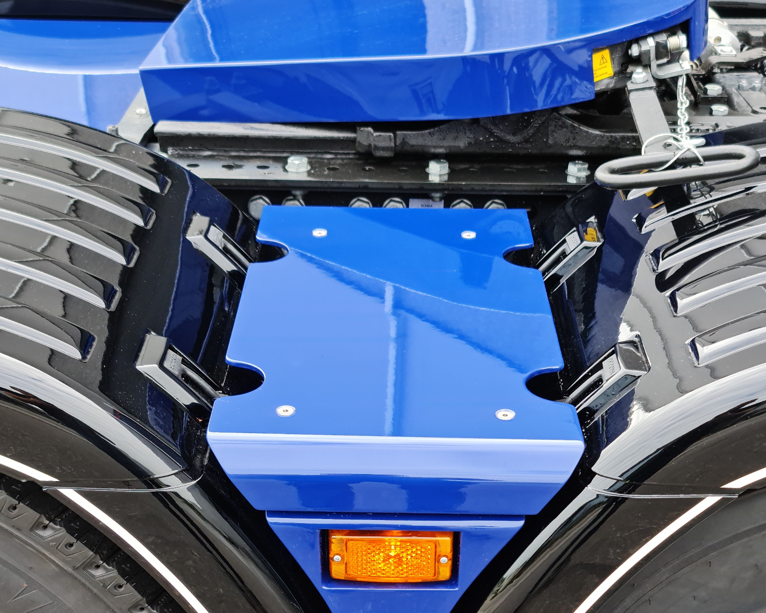 - Achterbumper met bolletjesverlichting aansluitend aan spatbord
