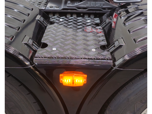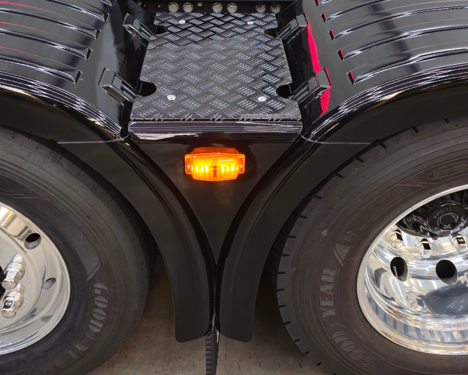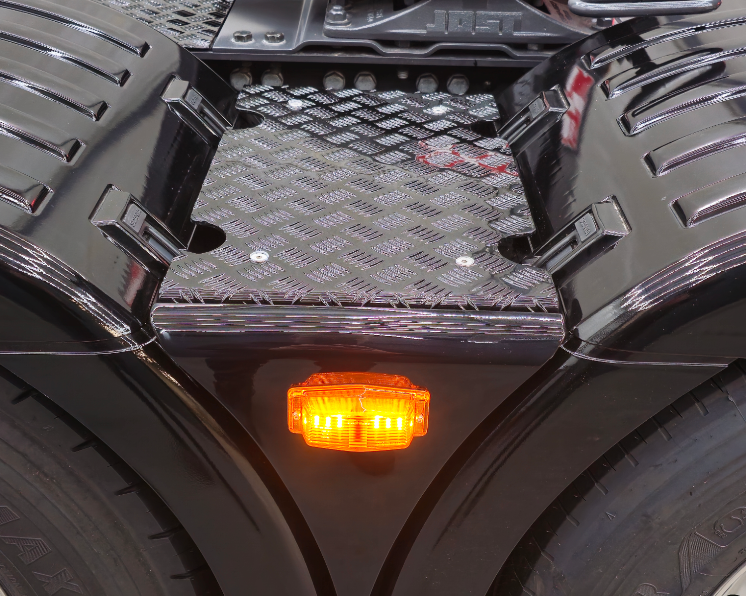 Dubbelbranders op de grill en op de hoek van de spoiler
