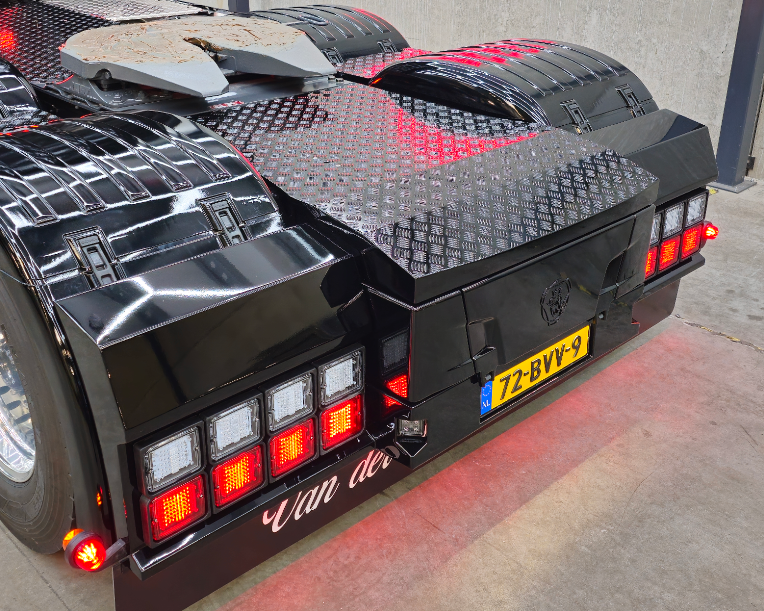 Rvs achterbumper met led lampen en (verdiepte) spatlap lampjes