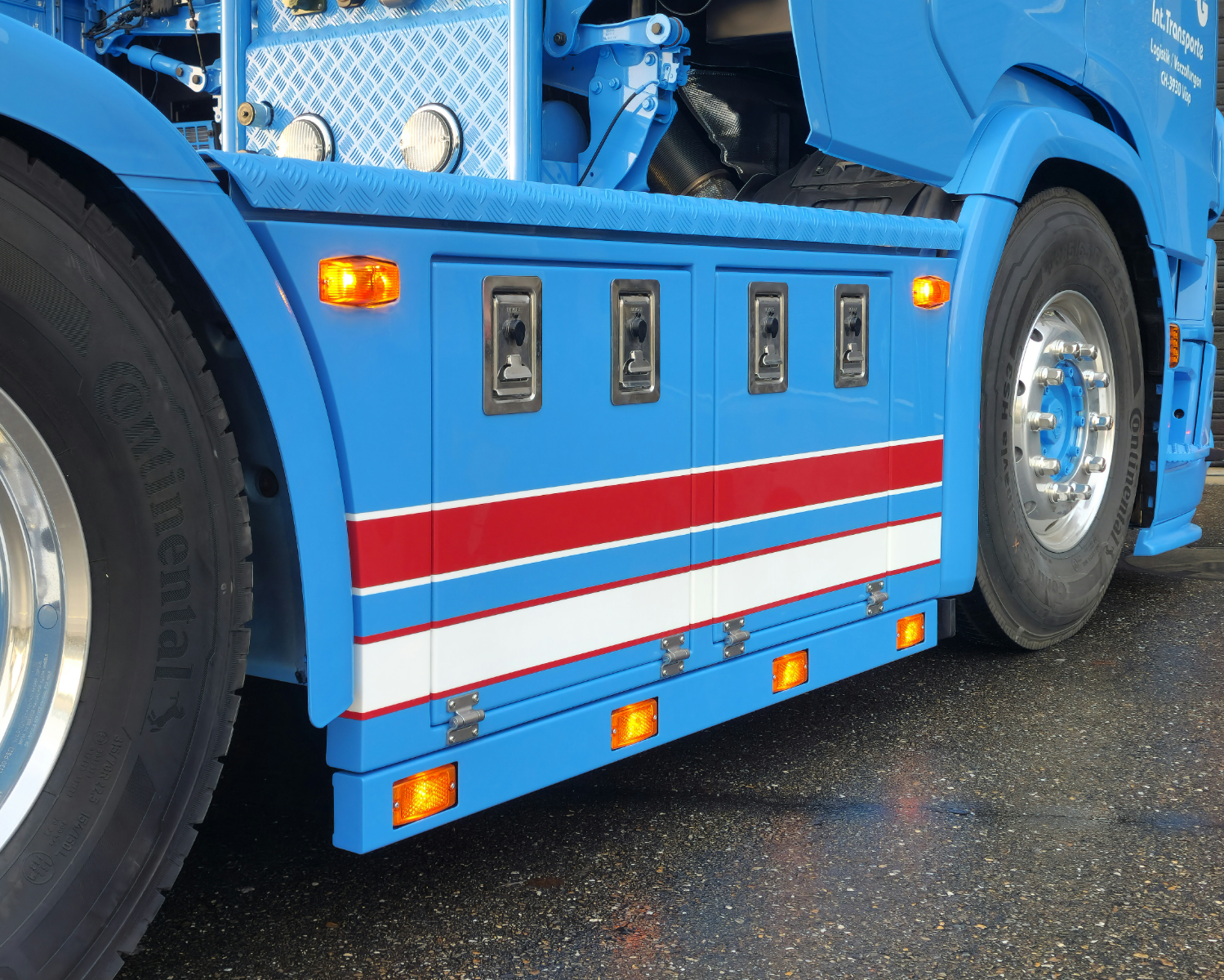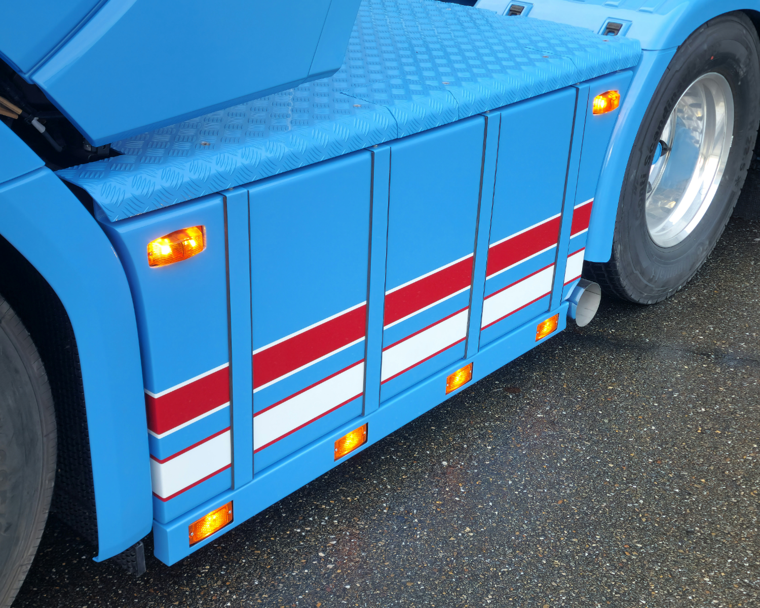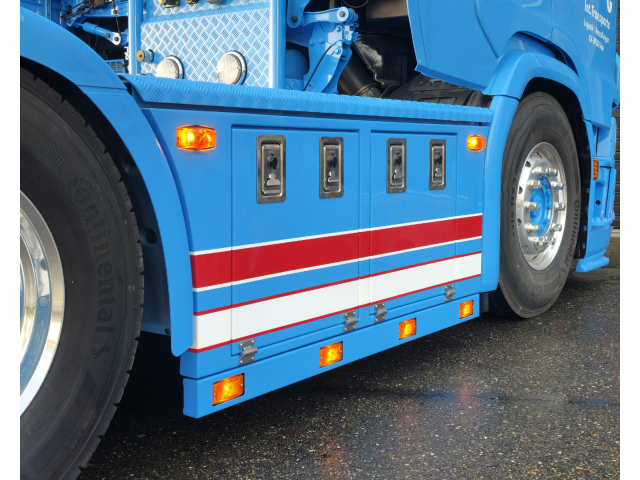 Rvs lichtlatten onder de skirts met Hella bloklampen