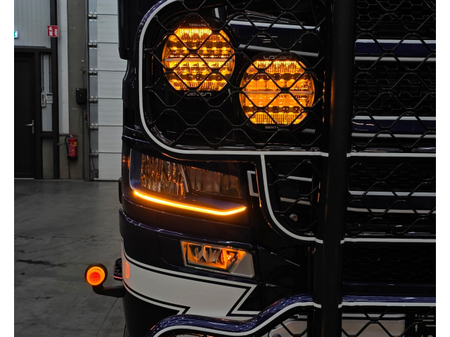 4 led verstralers, daglampen en breedtepaaltjes in het verlaagde Hypro rek met rechte pijp