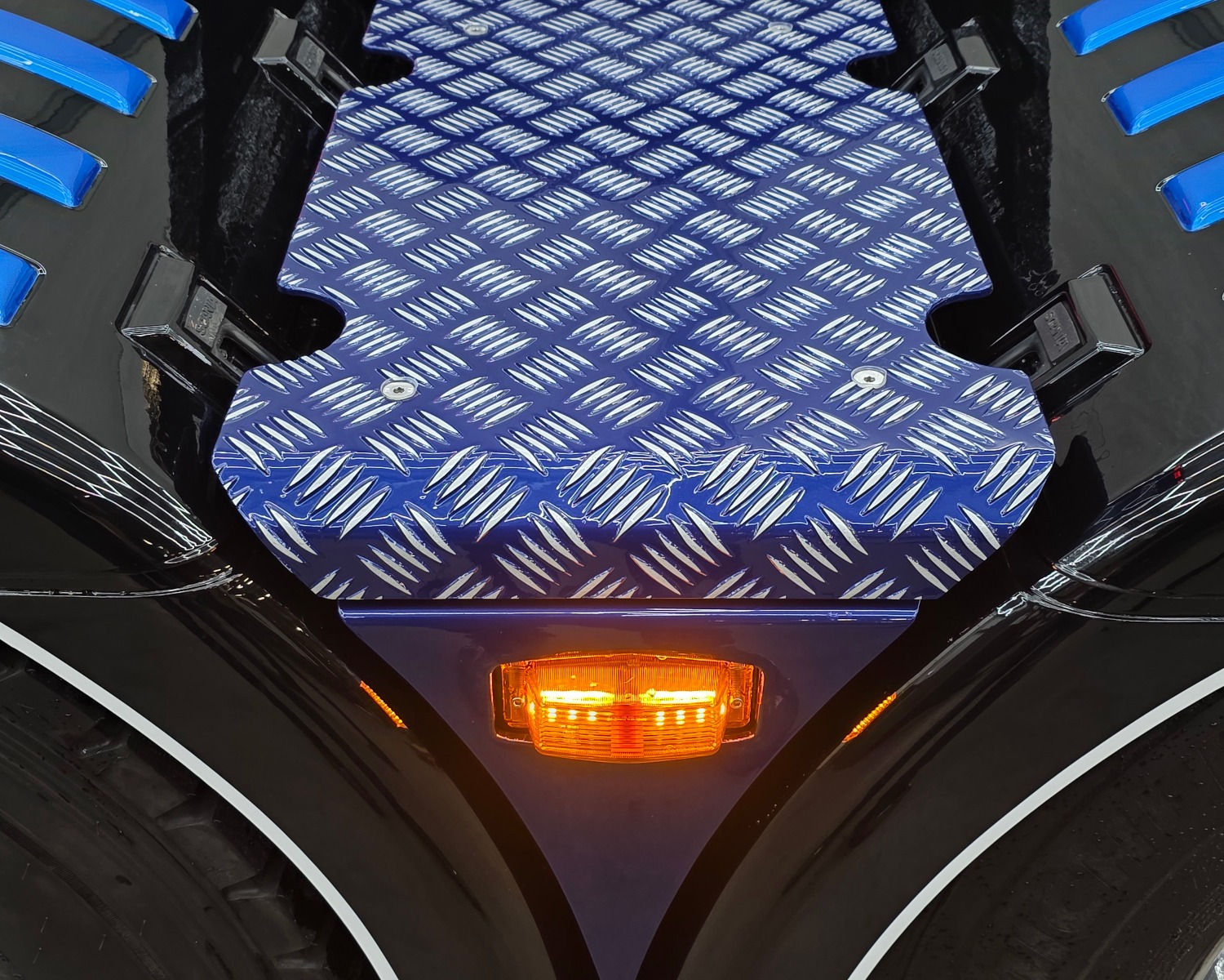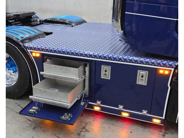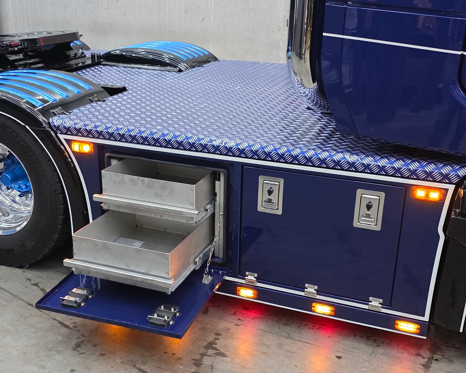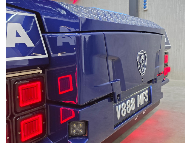 Rvs achterbumper met led lampen, bakje onder de accubak met werklampen