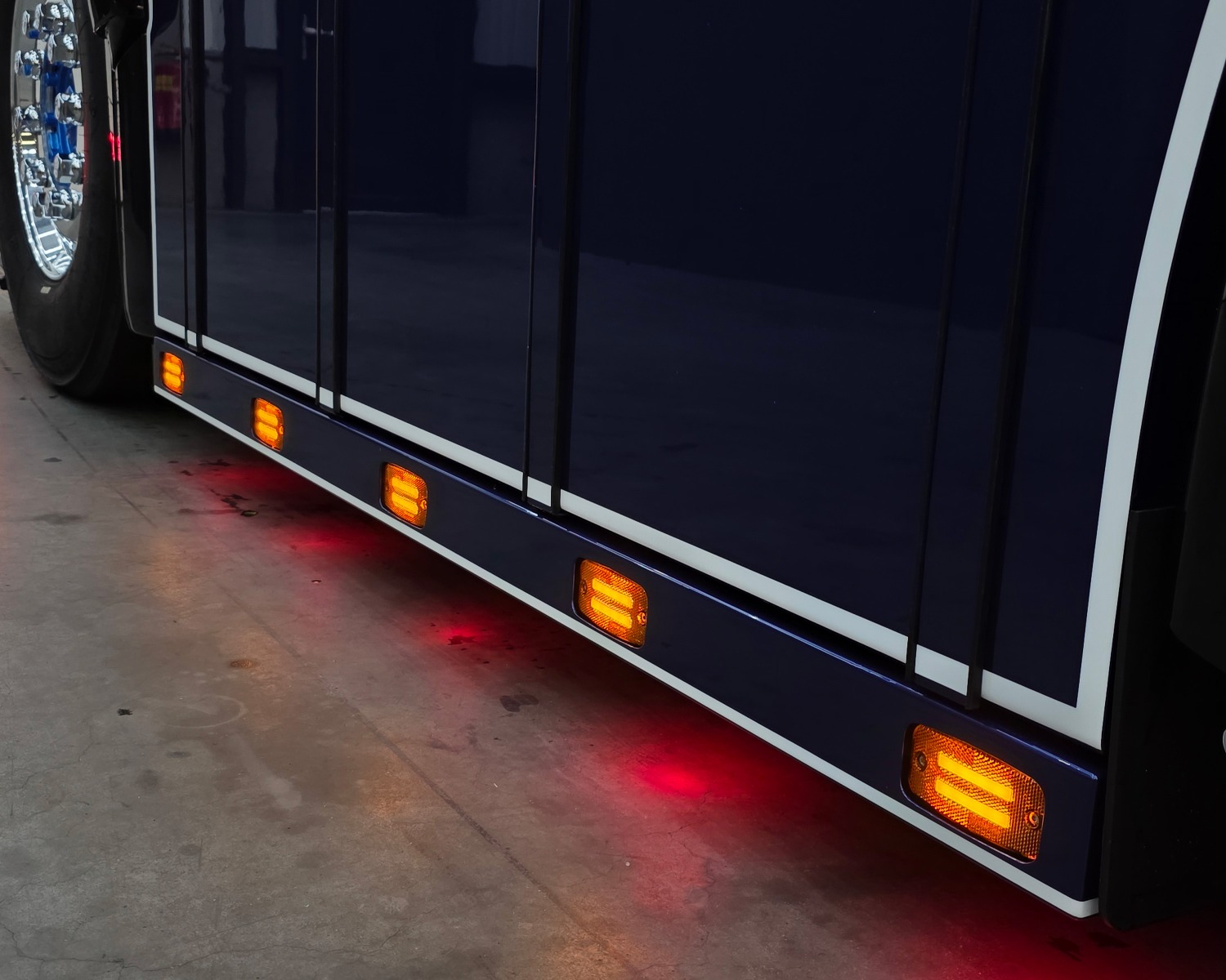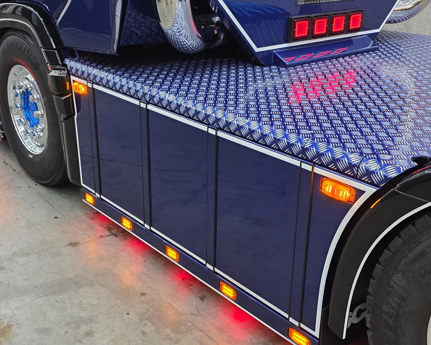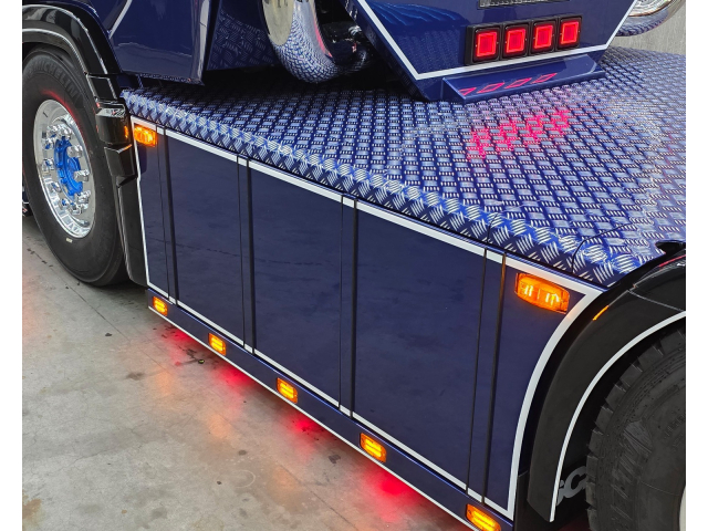 Sideskirts met tankbanden en verdiepte dubbelbranders in de hoeken
