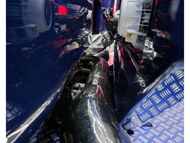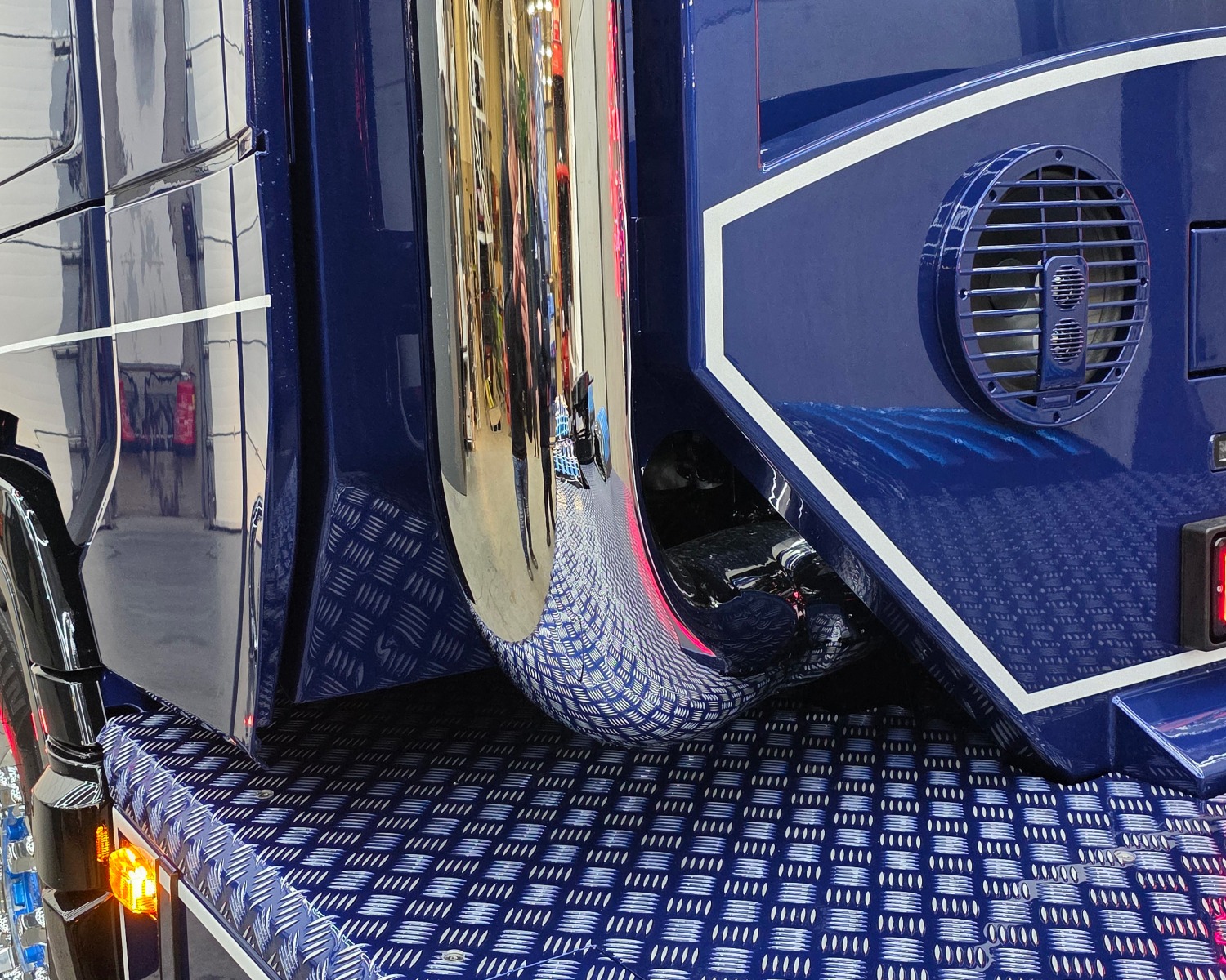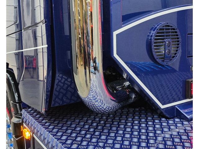 Slangenrek met staande uitlaten, led verlichting, speakers en een nato stekker bijgebouwd