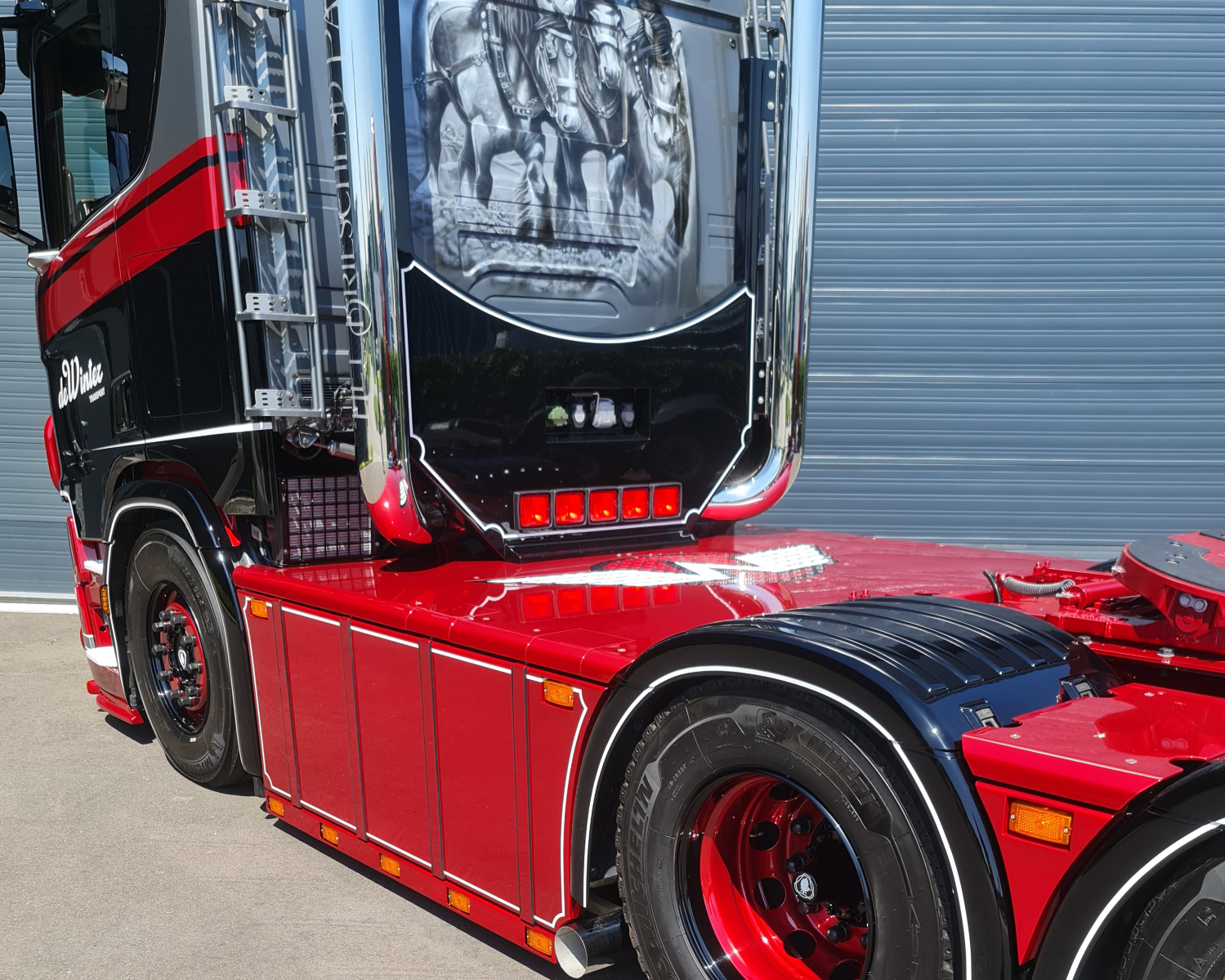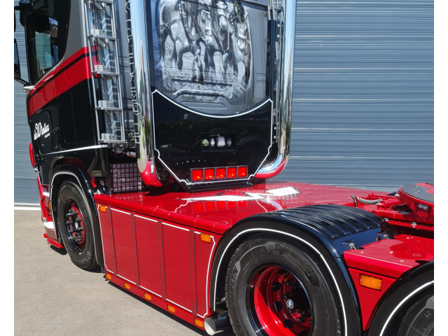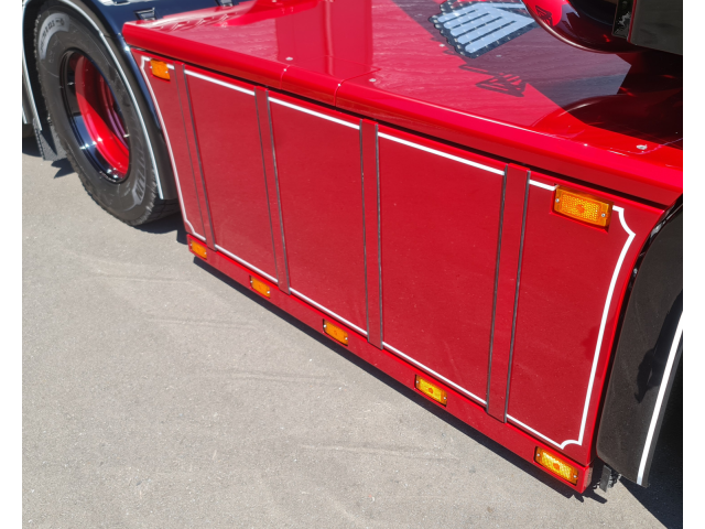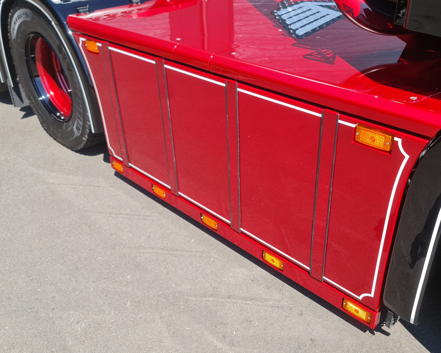 - Aluminium lichtlatten onder de skirts met Hella bloklampen