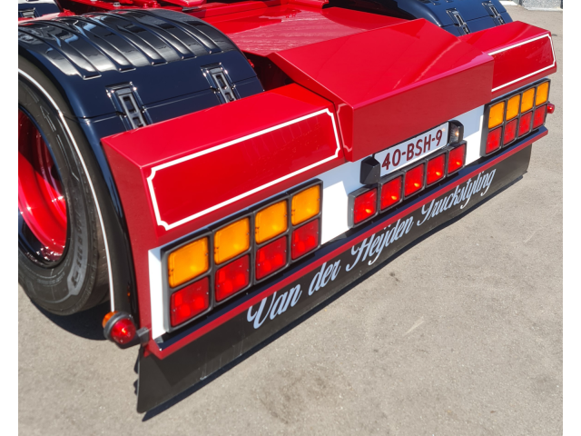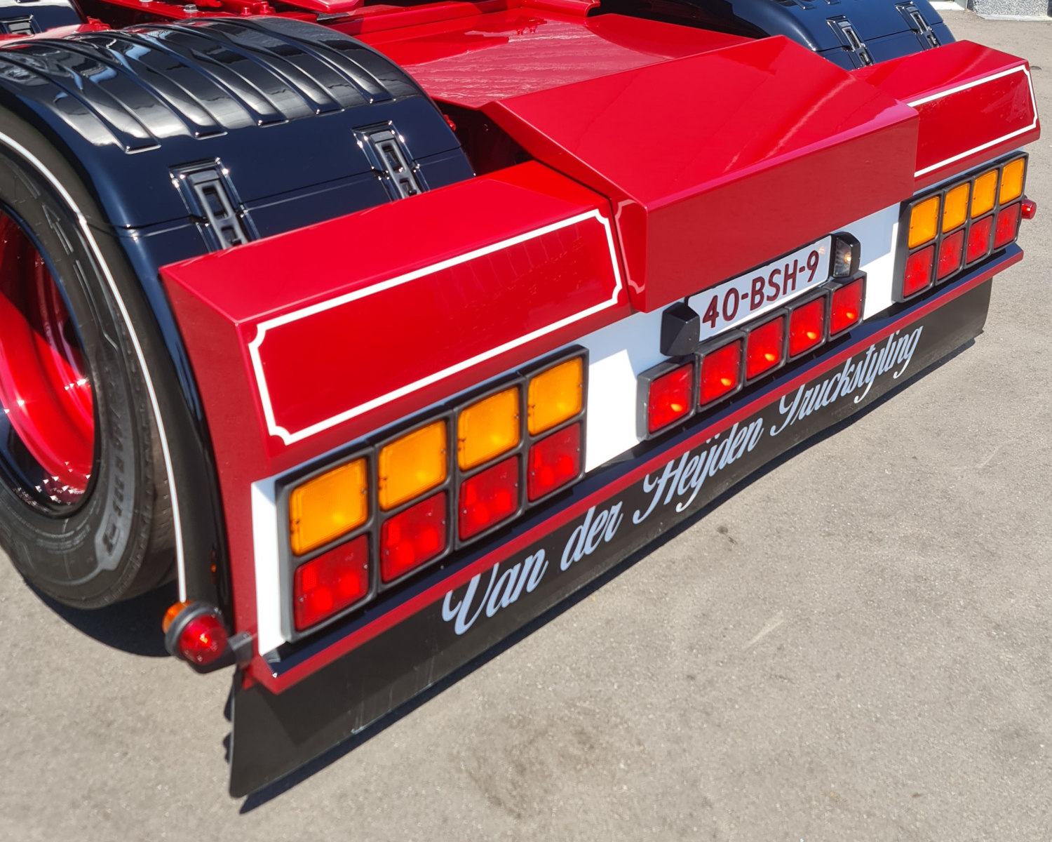 - Achterbumper met bolletjesverlichting aansluitend aan spatbord