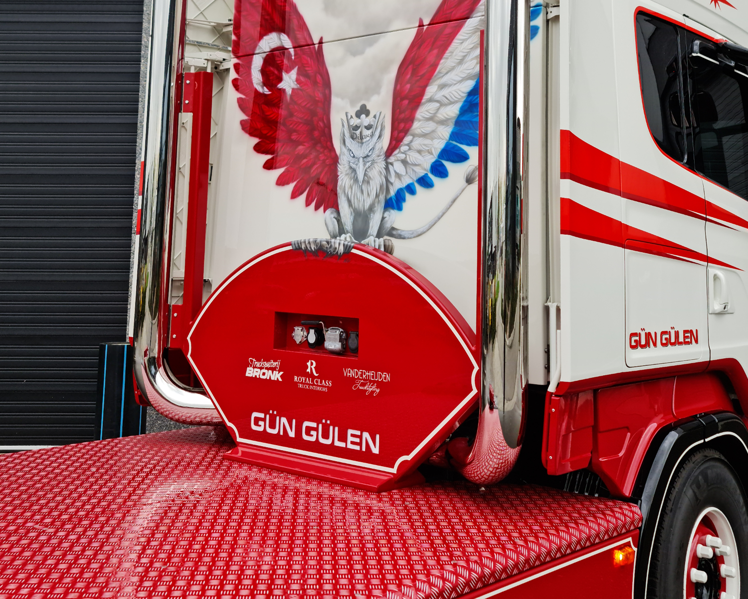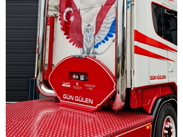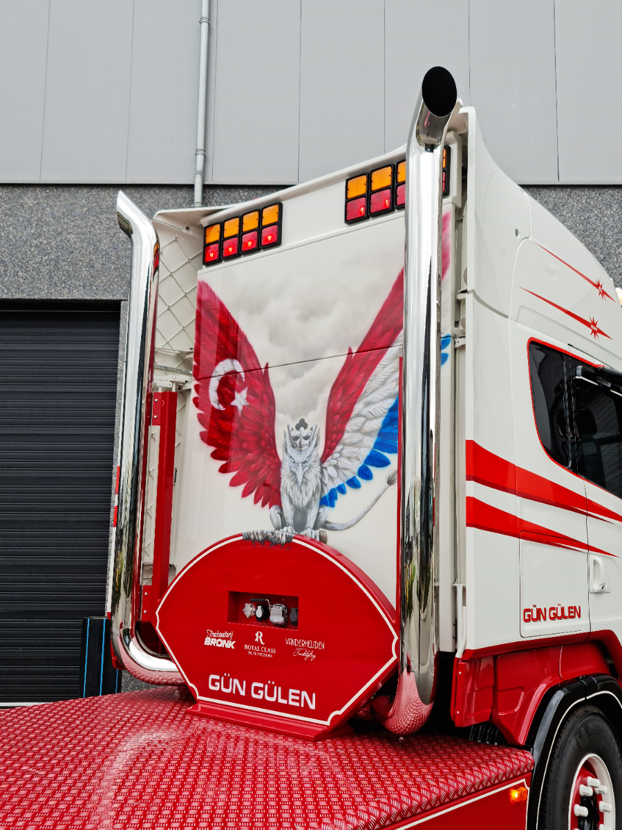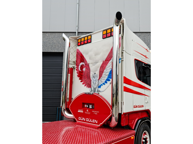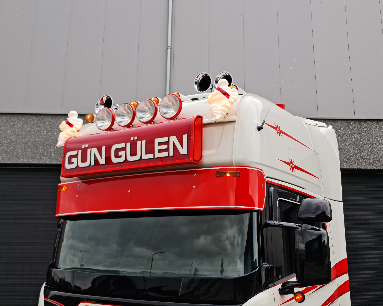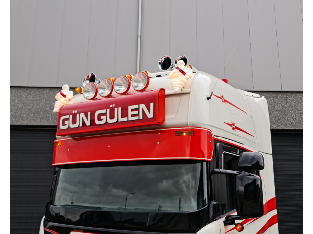- Dakopbouw met 4 verstralers, Michelinpoppen, 4 toeters, 5 torpedo toplampen en zwaailampen door de spoiler