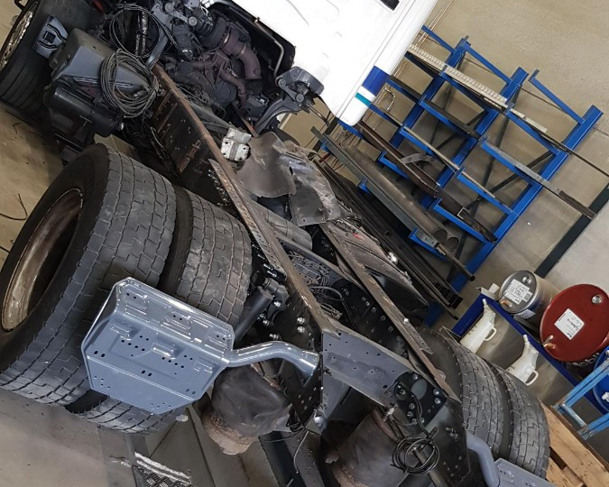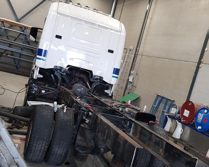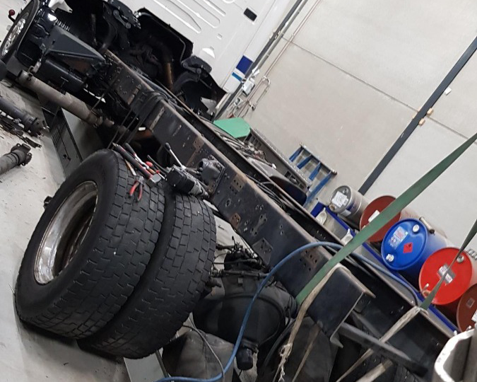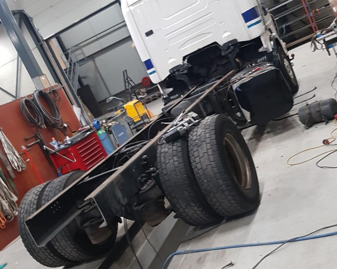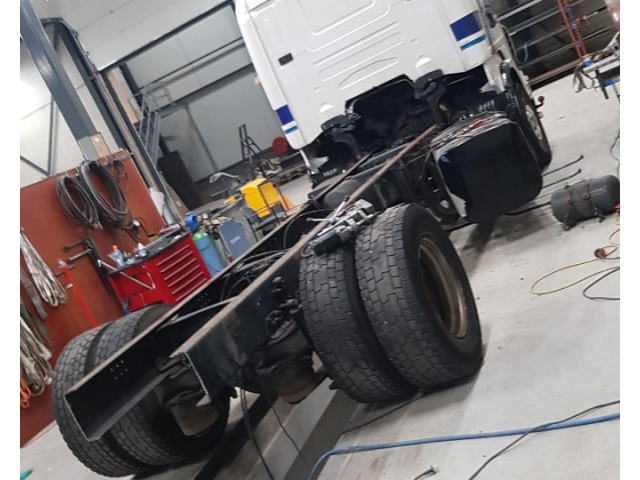 Voor Sem van Semtrade een bakwagen ingekort tot trekker en het chassis laten stralen en spuiten! Ook hebben we de auto laten keuren en alles kloppend laten maken op kenteken.