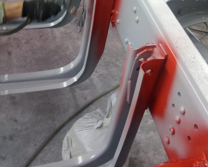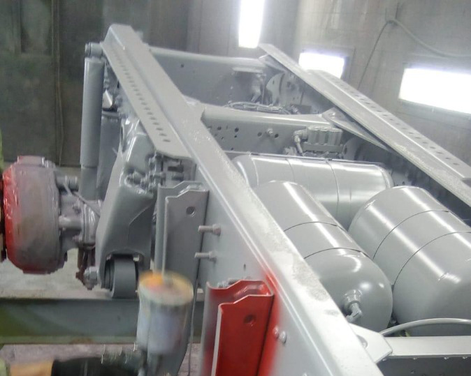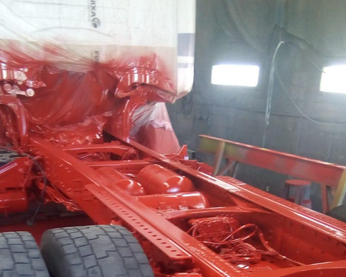 - Trekker en het chassis laten stralen en spuiten