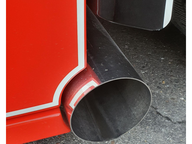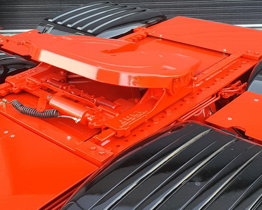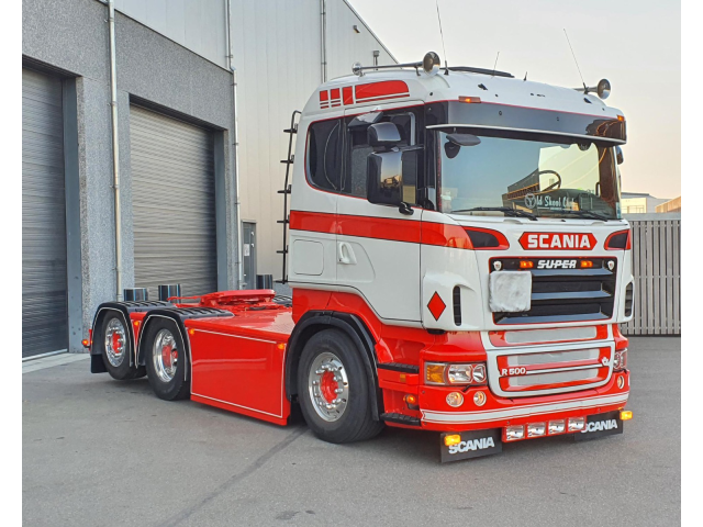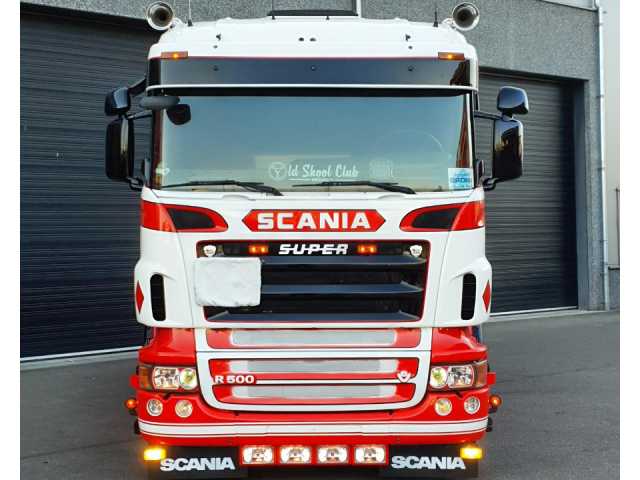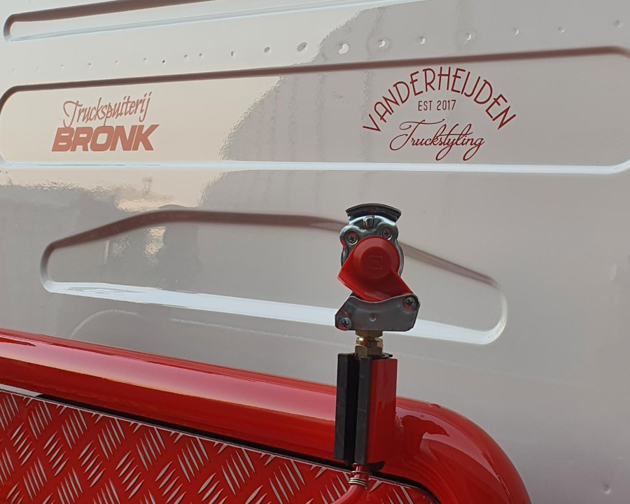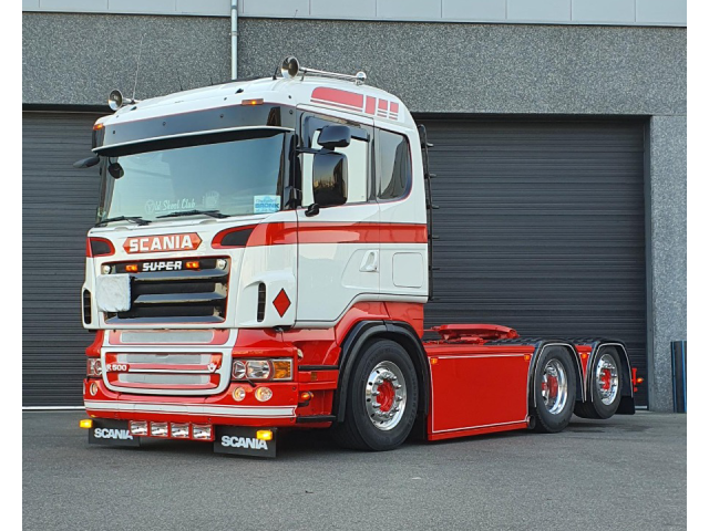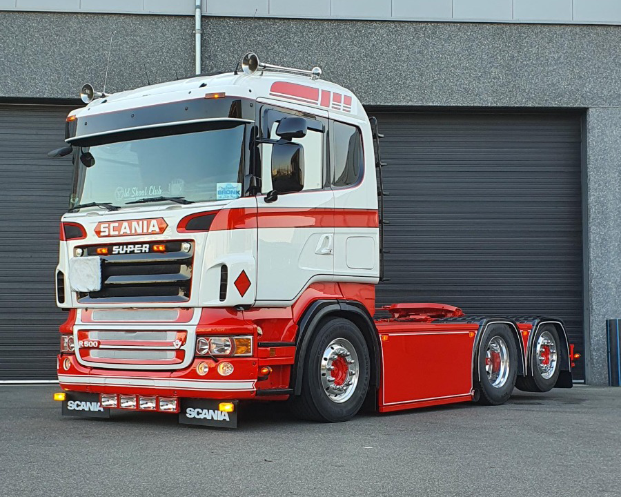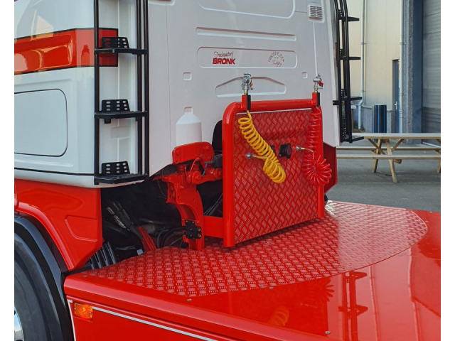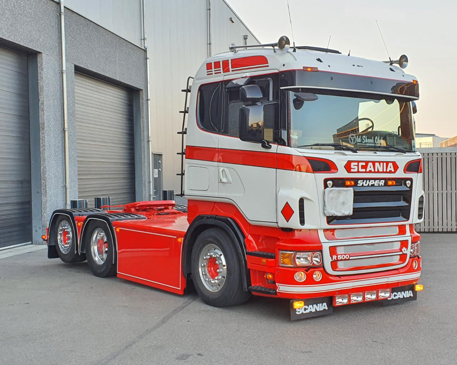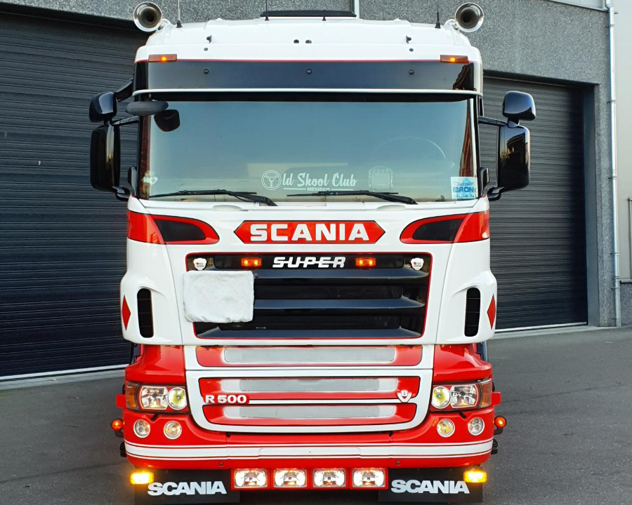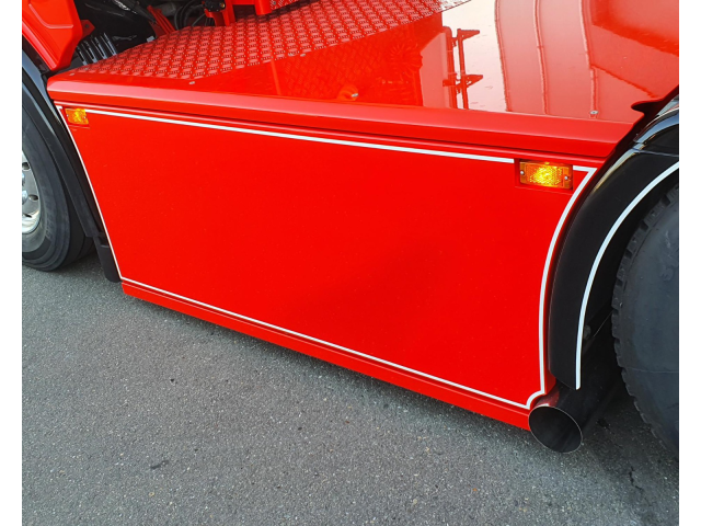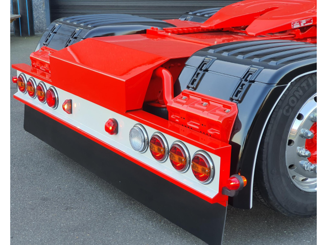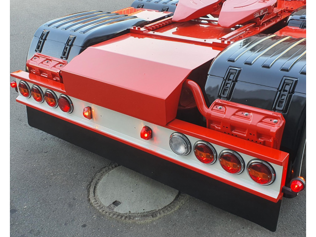 - Auto voorzien van spatbordsteunen en spatborden, de Scania was voorheen een bakwagen