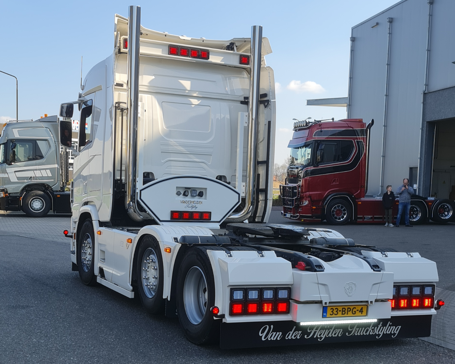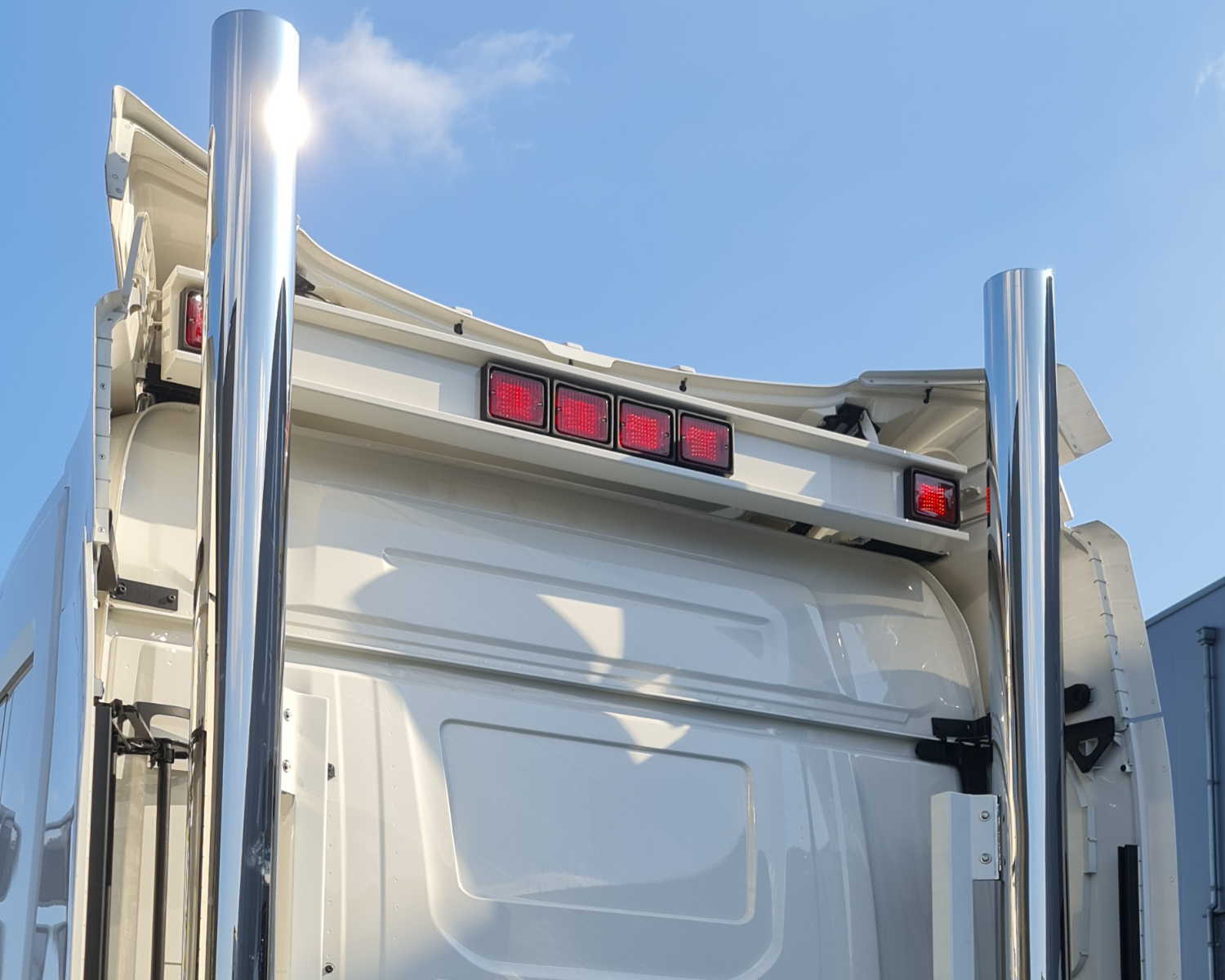 - Slangenrek met 4 led bloklampen en staande uitlaten