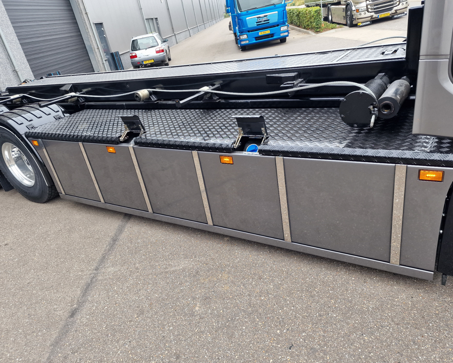 - Traanplaten op de kist, sideskirts en stringen om het geheel af te werken