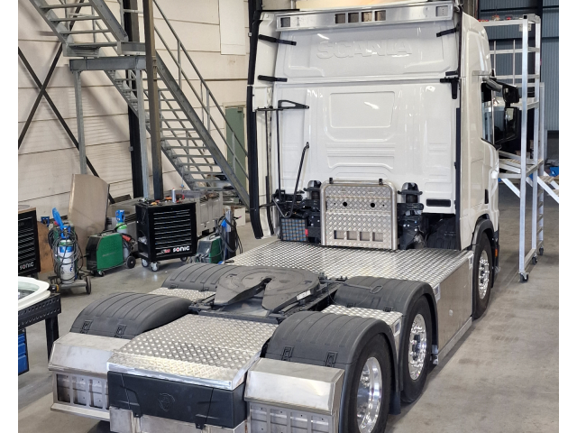 Luchtketels verhangen van tussen de assen en onder de accubak