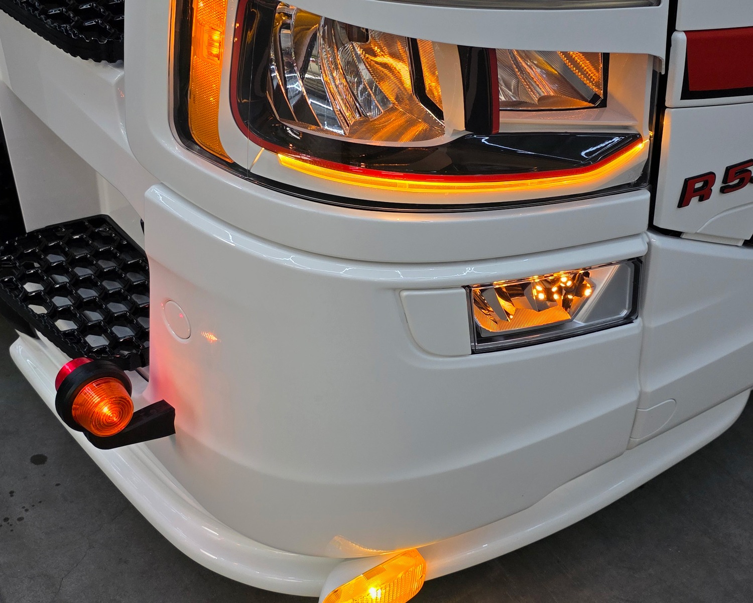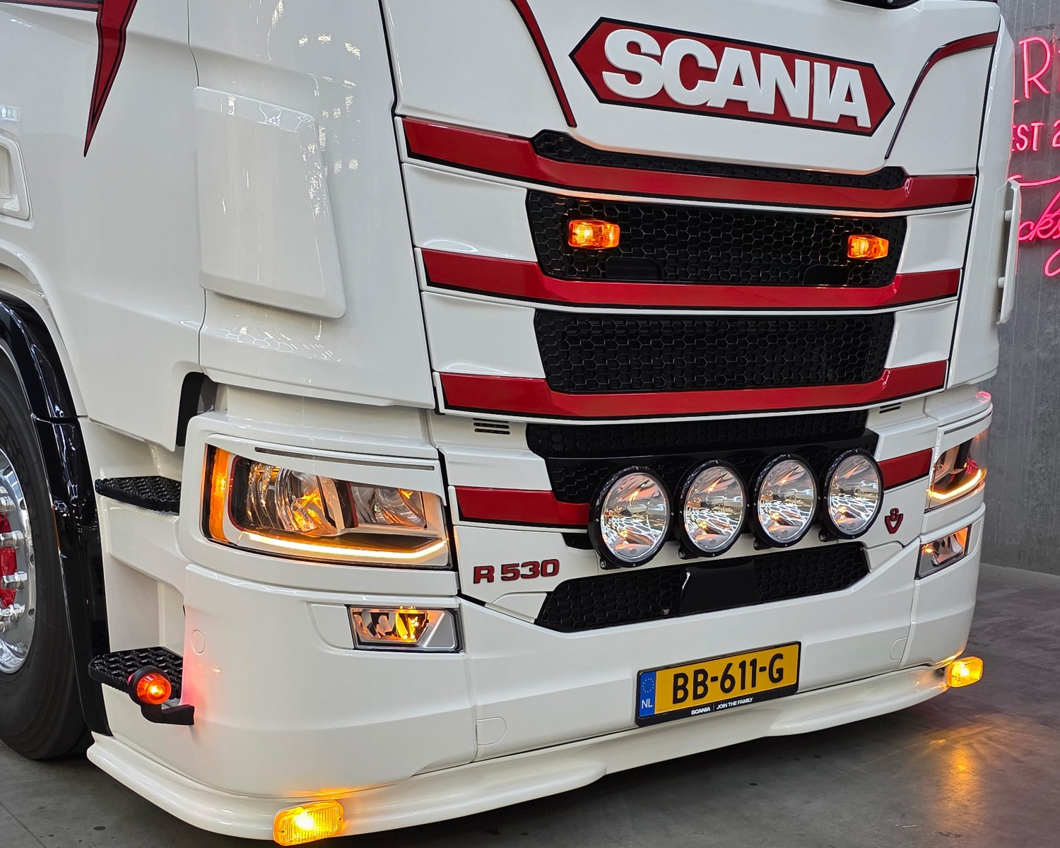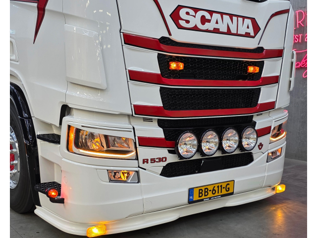 Dubbelbranders op de grill en in de hoeken van de spoiler