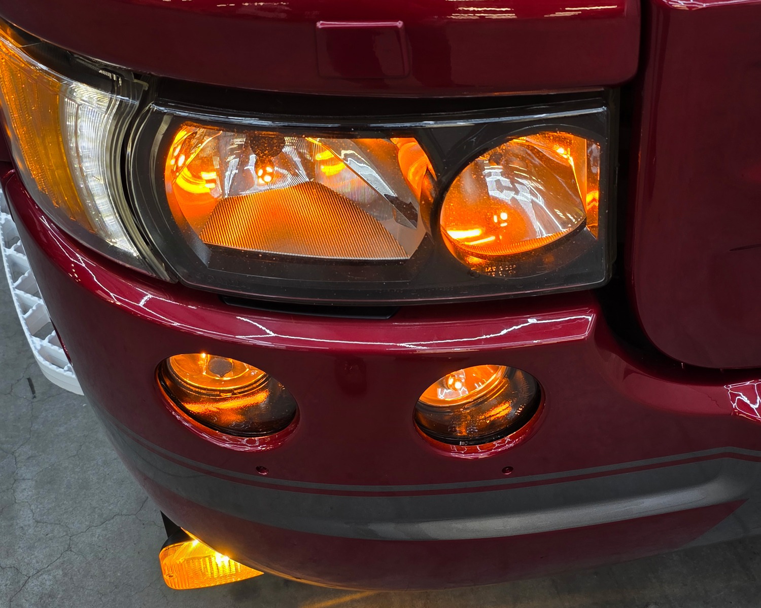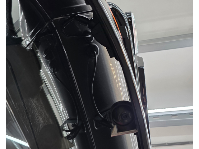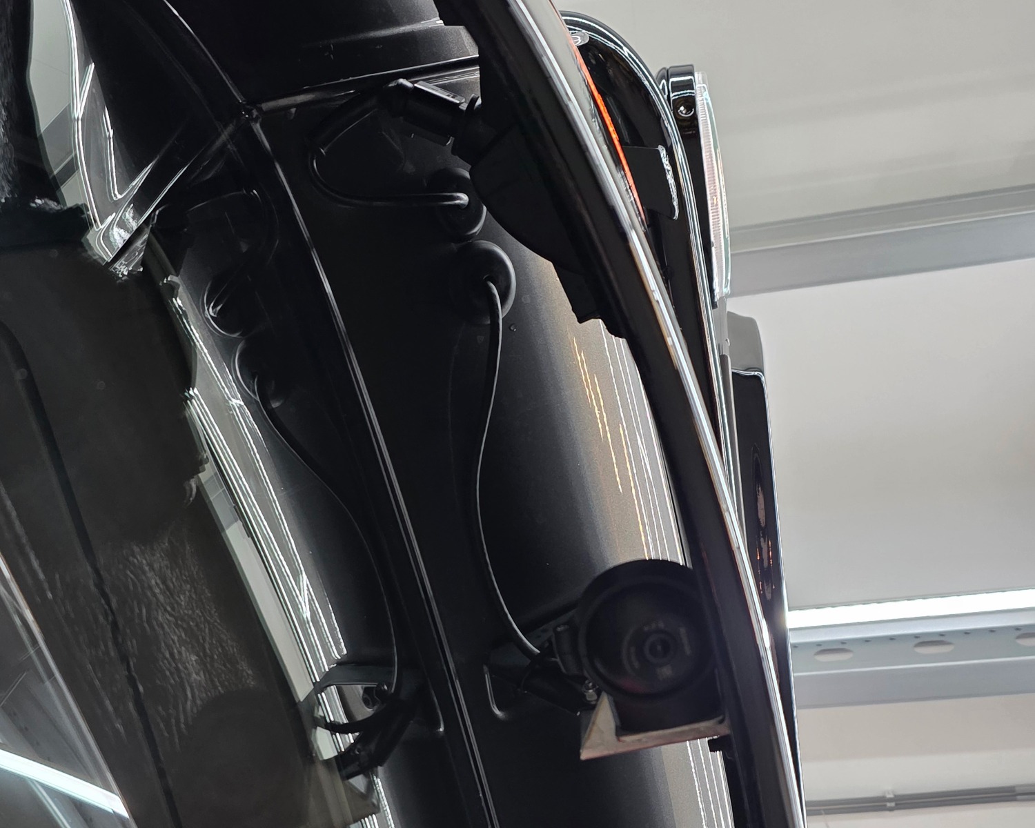 Lange zonneklep met camera eronder en bolletjes toplampen