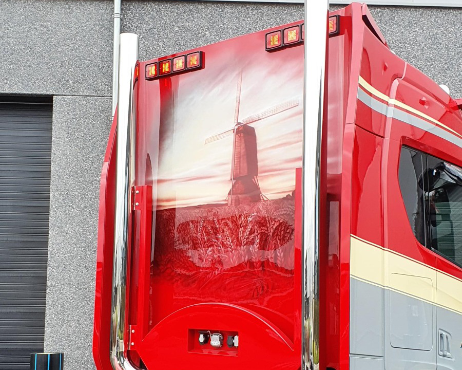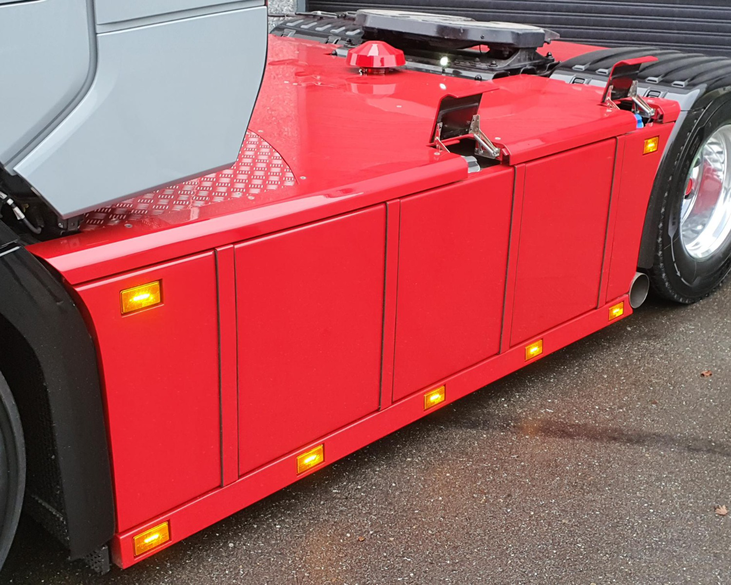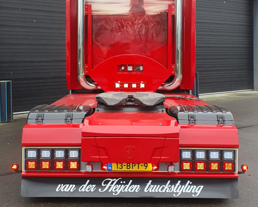 - Achterbumper met led verlichting aansluitend aan spatbord