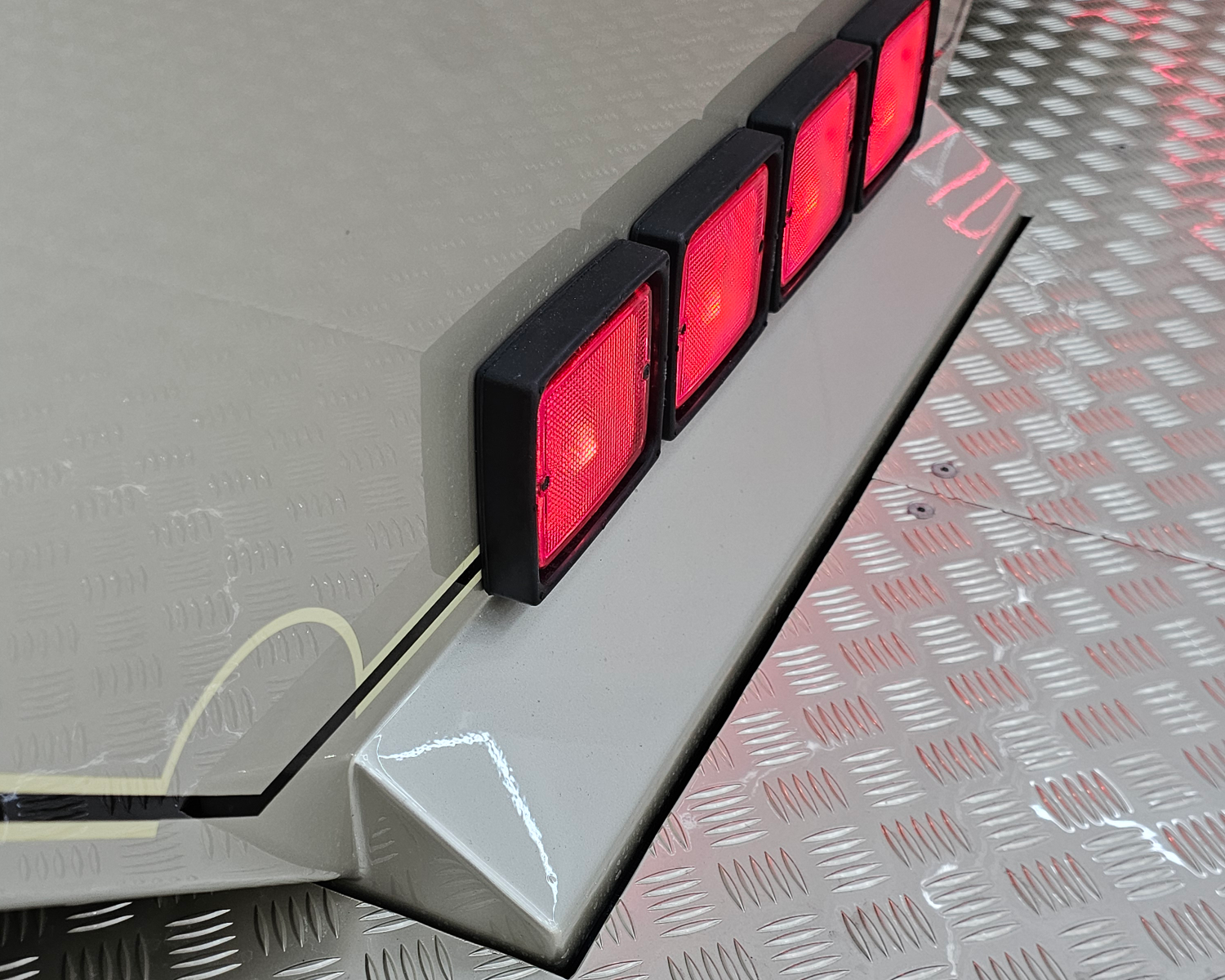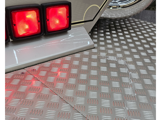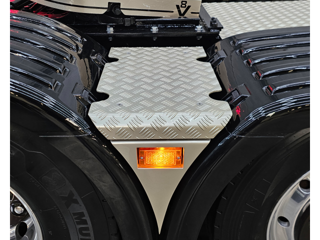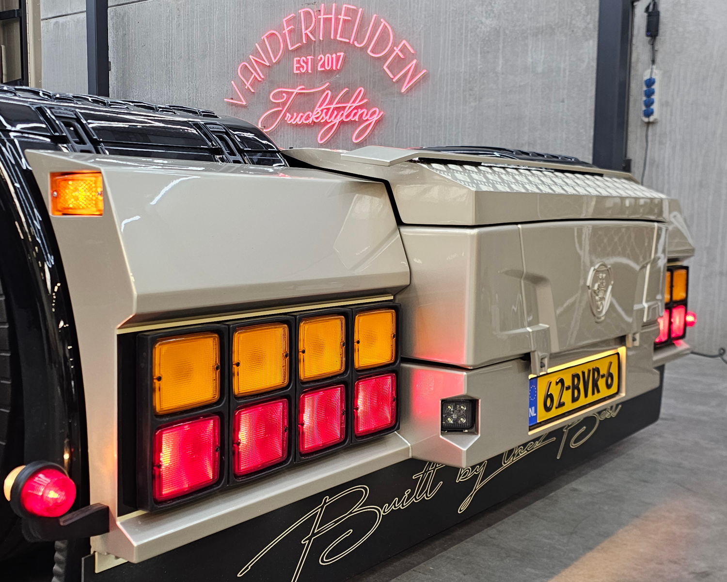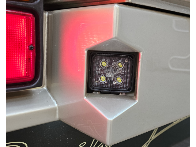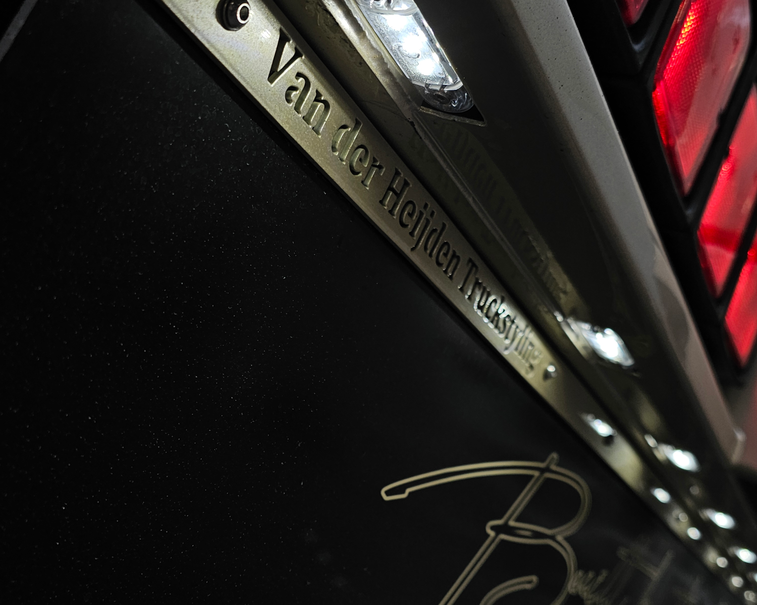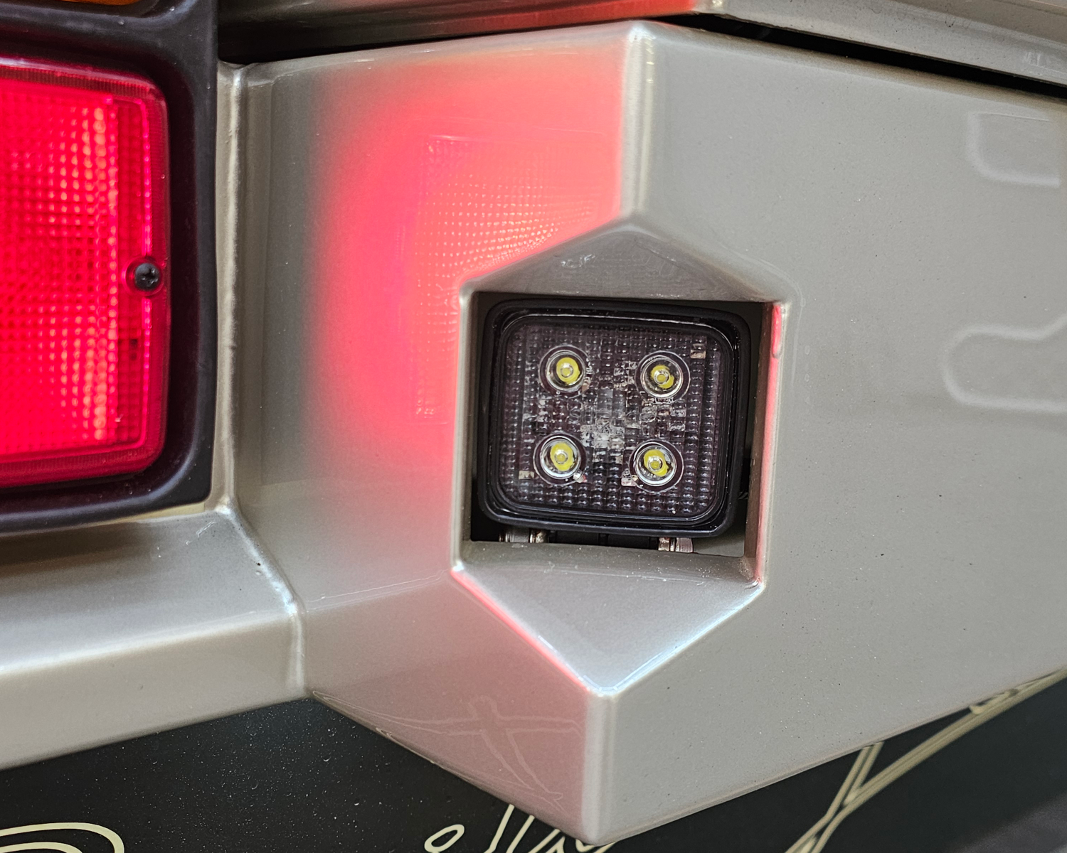 Rvs achterbumper met bolletjes lampen, spatlap lampjes en Werklampen