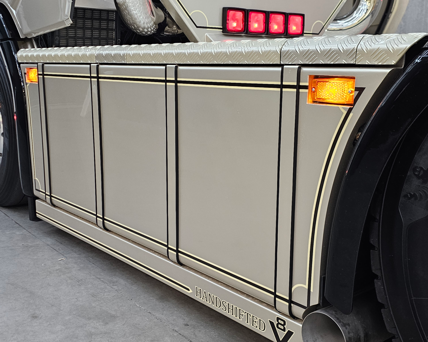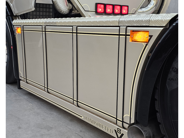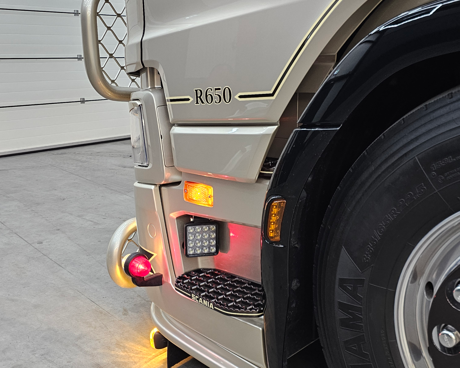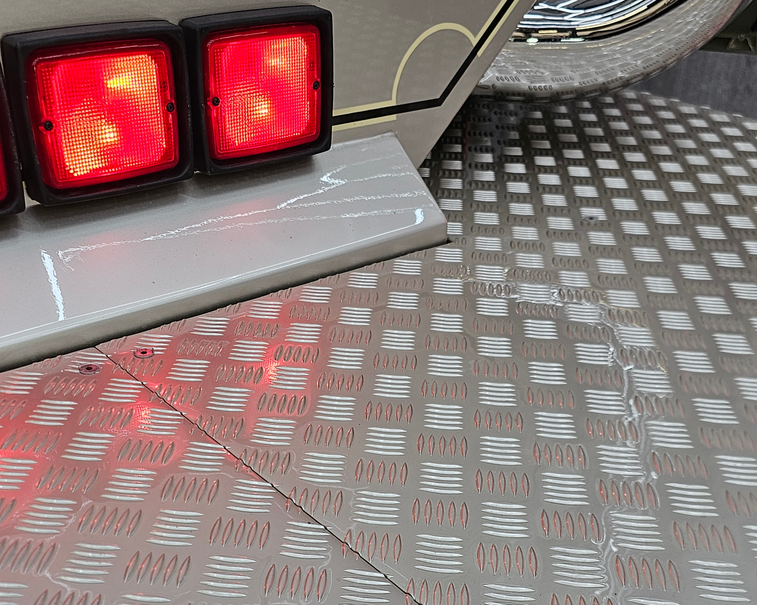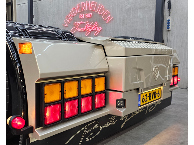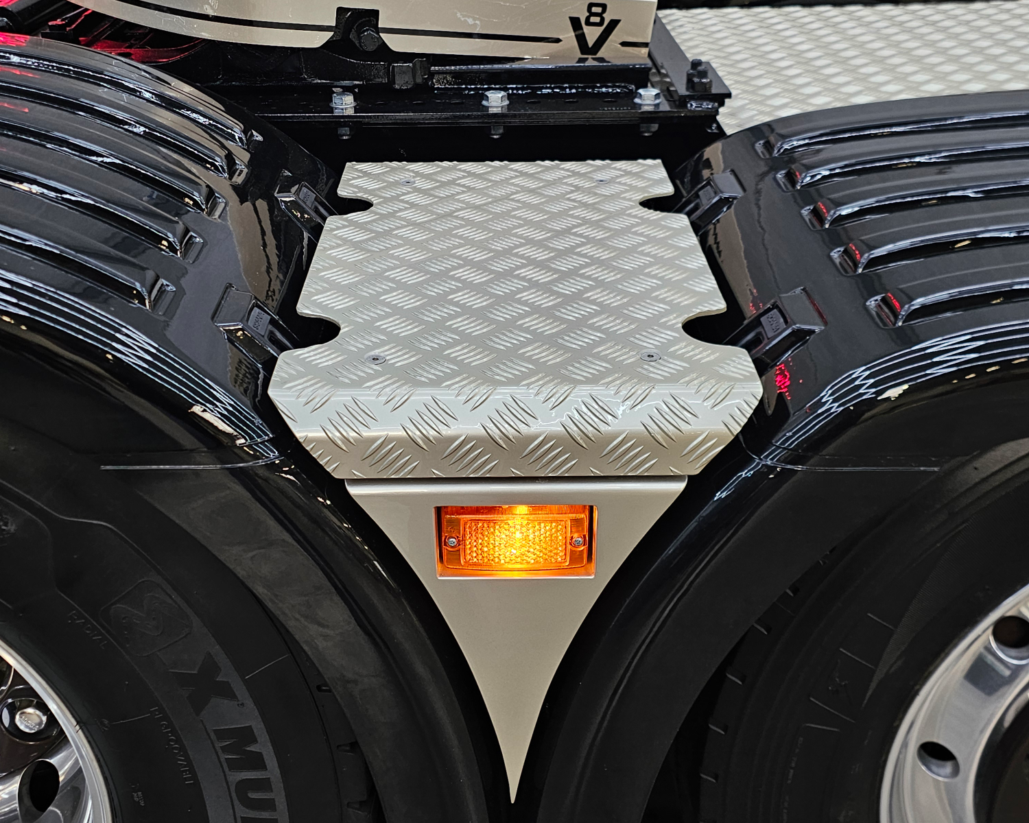 Rvs achterbumper met bolletjes lampen, spatlap lampjes en Werklampen