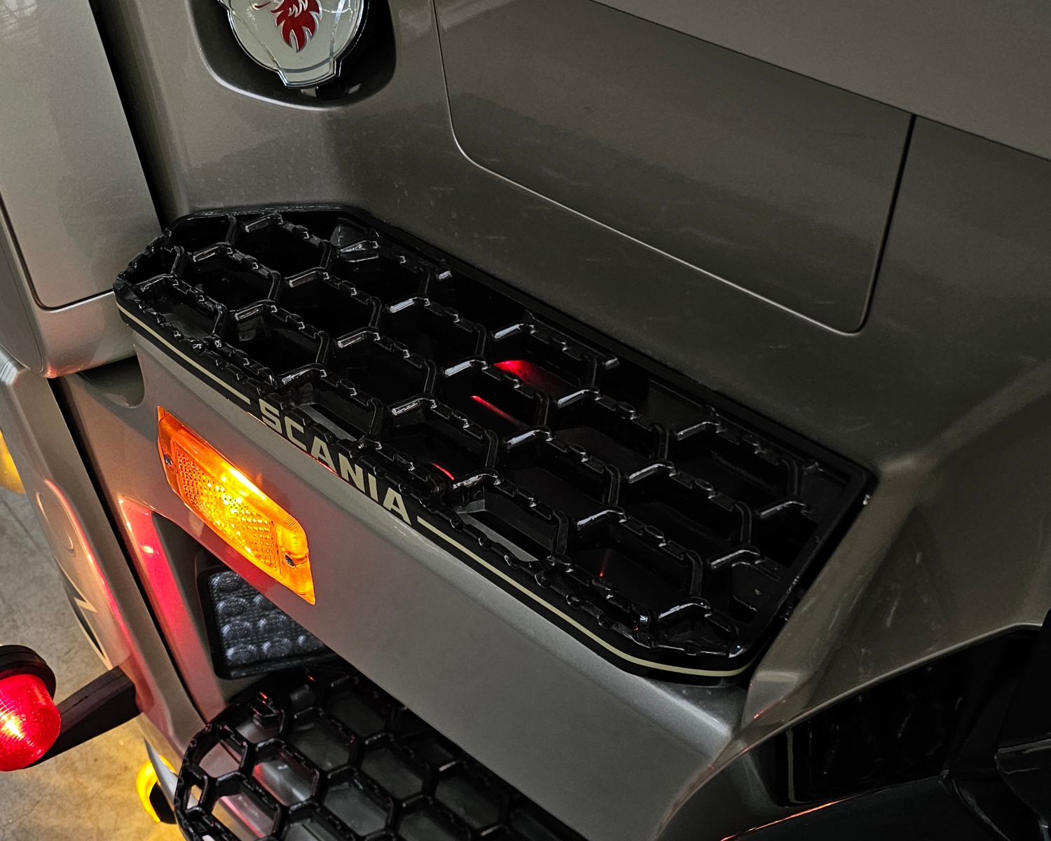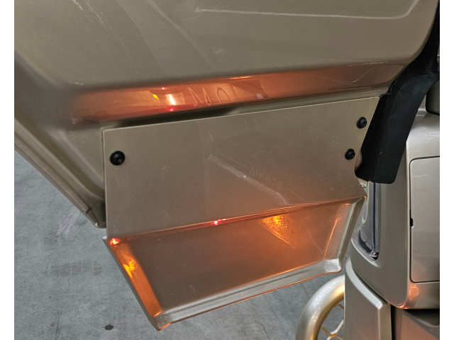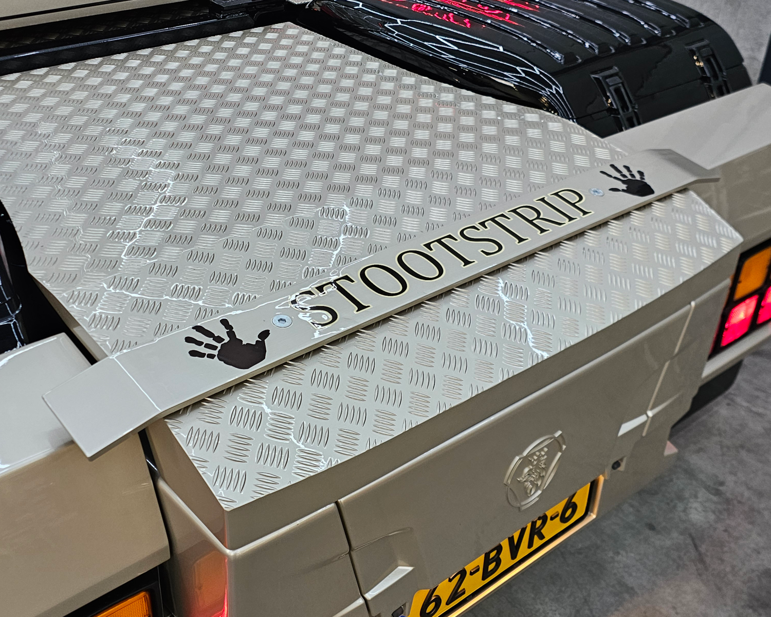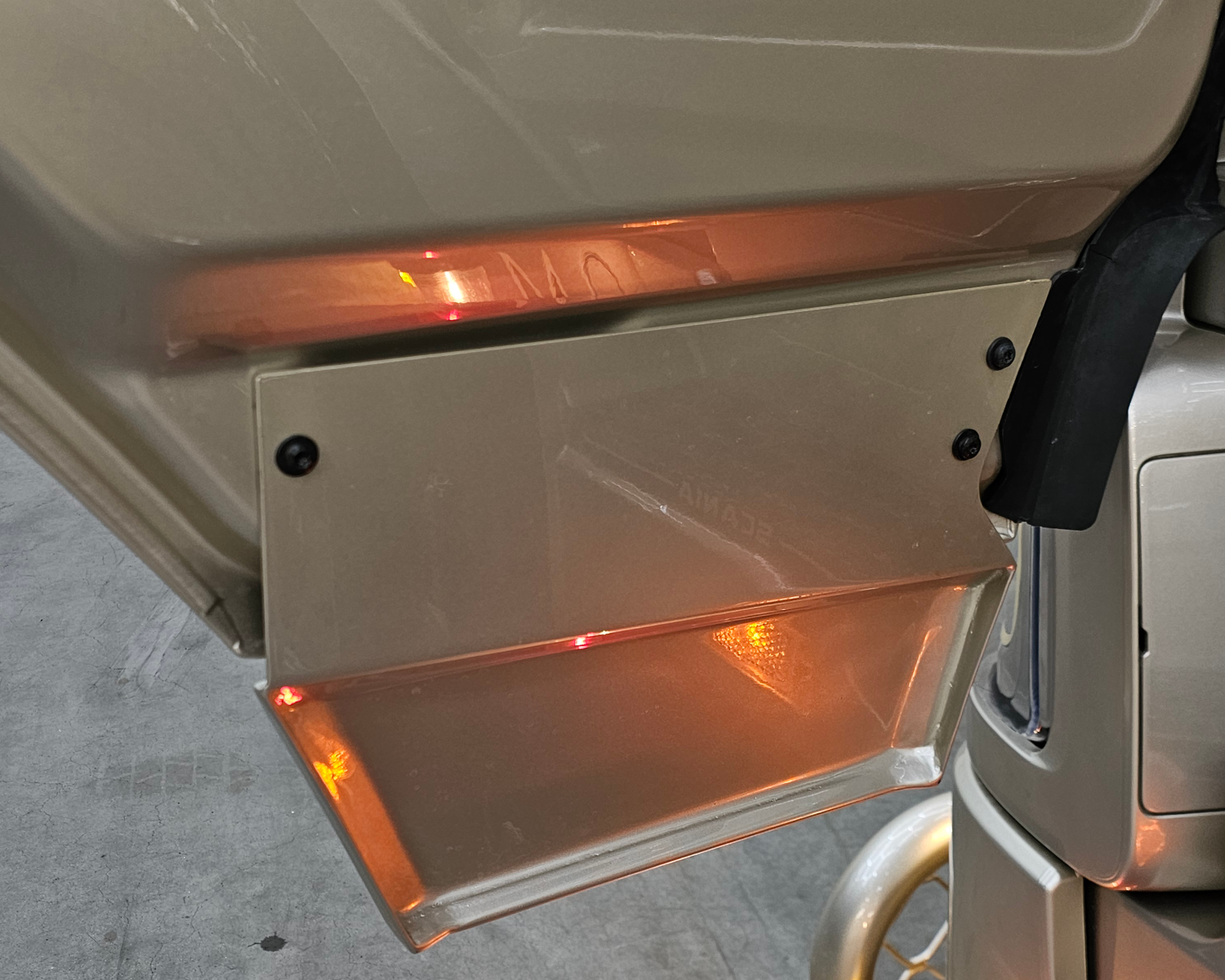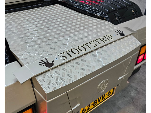 Traanplaat achter de schotel met stootstrip, aansluitend aan de accubak