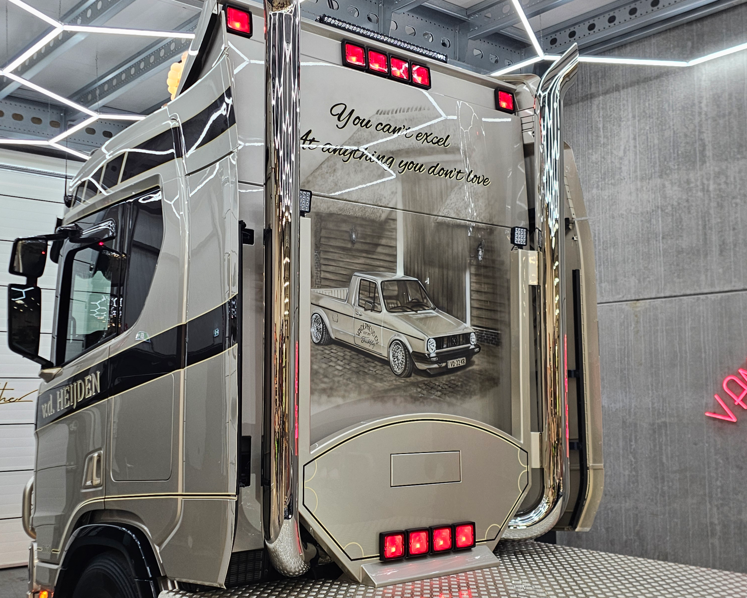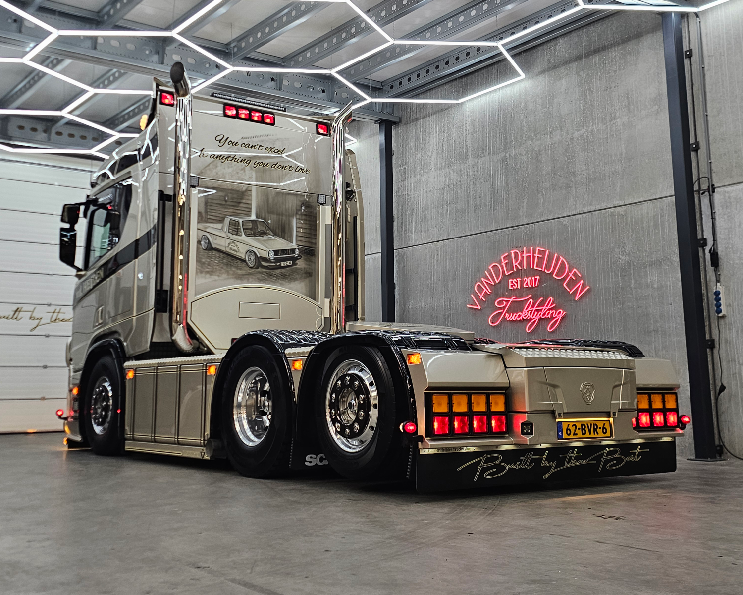 Jullie zullen hem misschien al voorbij hebben zien komen, na truckshow Ciney afgelopen weekend, maar nu bij ons online! Onze nieuwe Scania R650 6x2 naloper met handbak. En als kers op de taart het weekend afgesloten met 2e plaats top 10! Kevin geniet ervan en veel uren en kilometers ermee!
