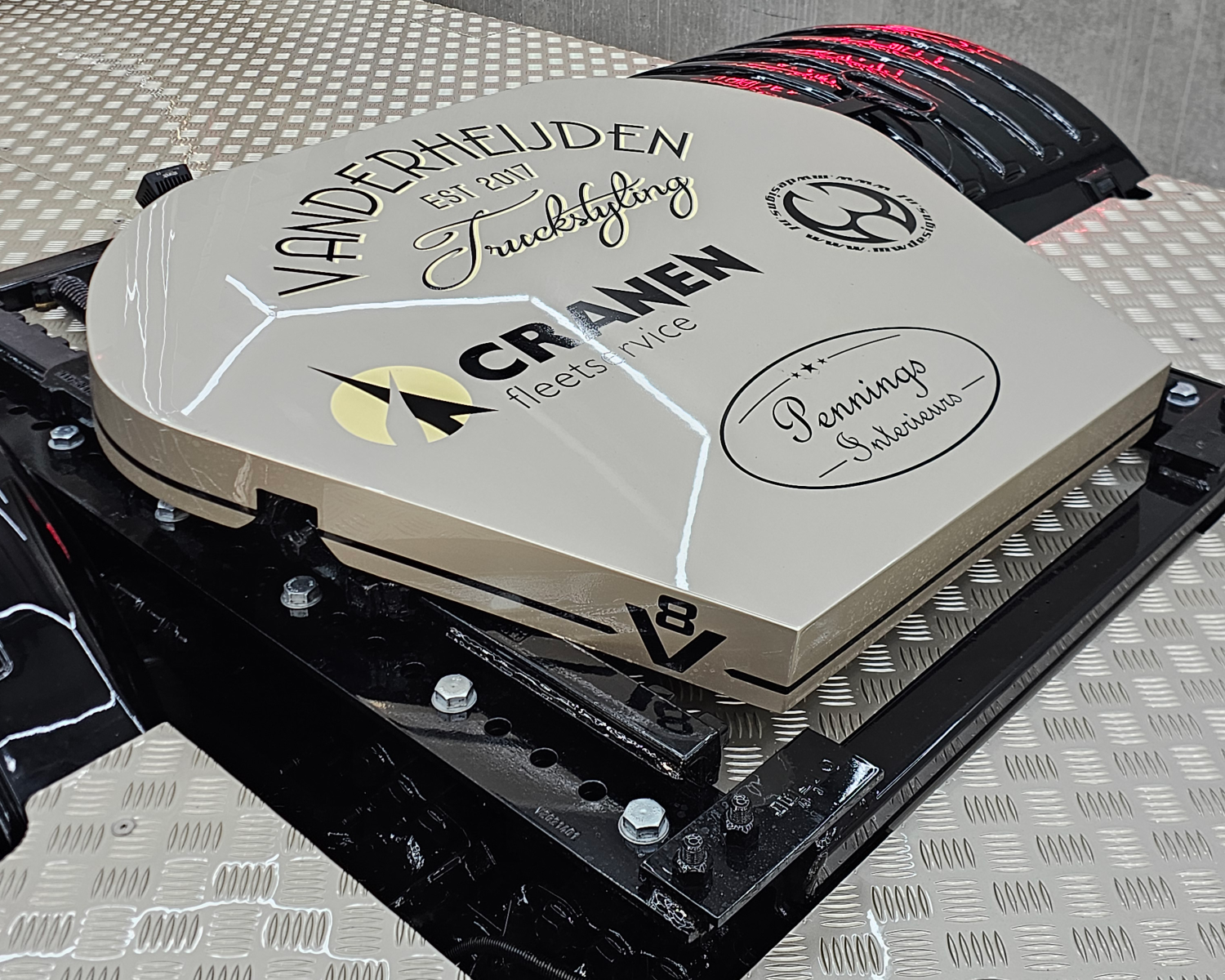Zonneklep custom aluminium zonder verlichting, ook zit er een camera weg gebouwd onder de zonneklep