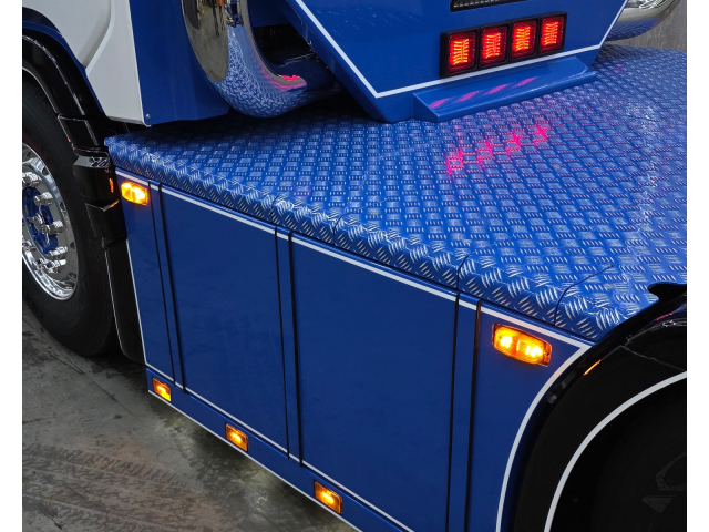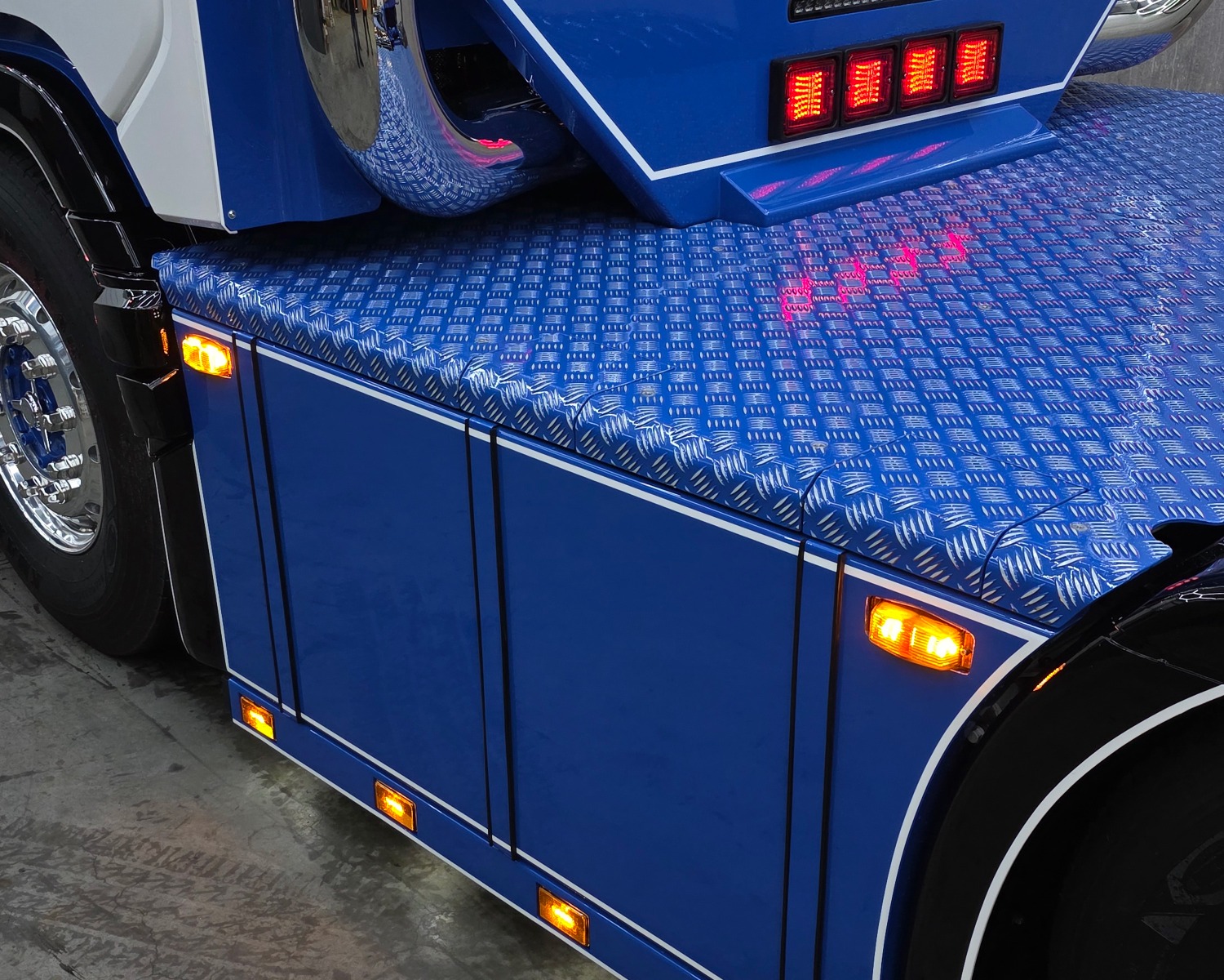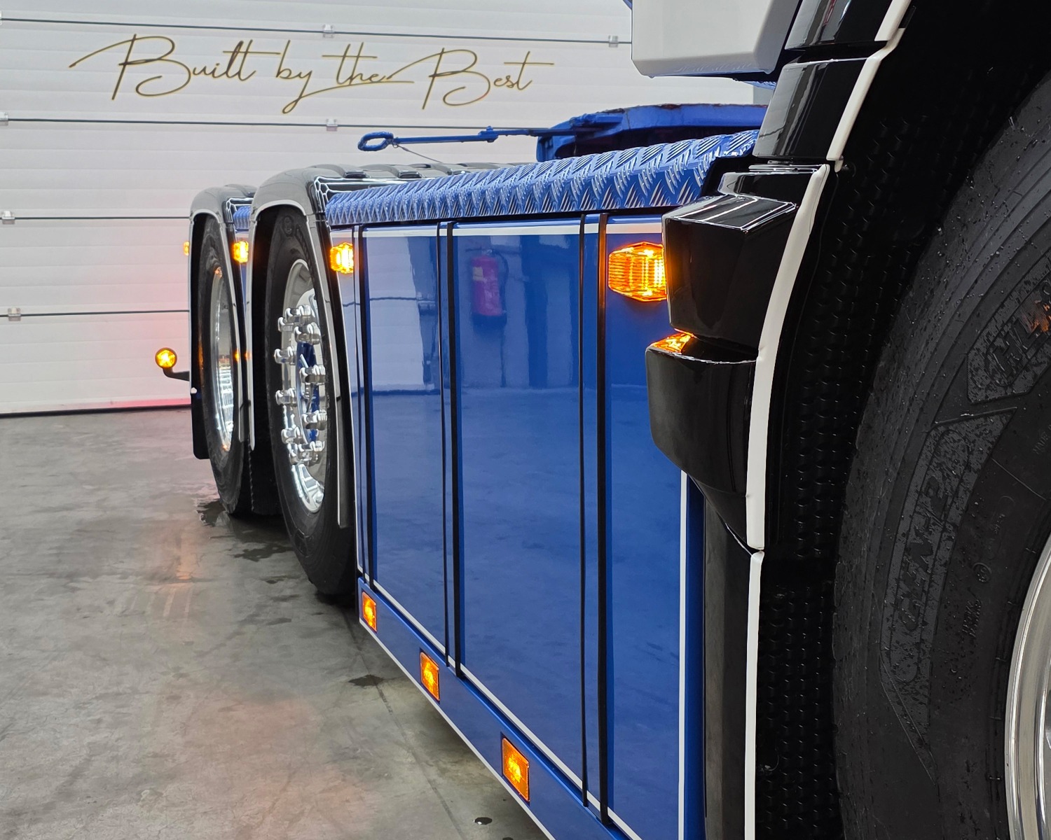 Sideskirts met rvs tankbanden en verdiepte led dubbelbranders