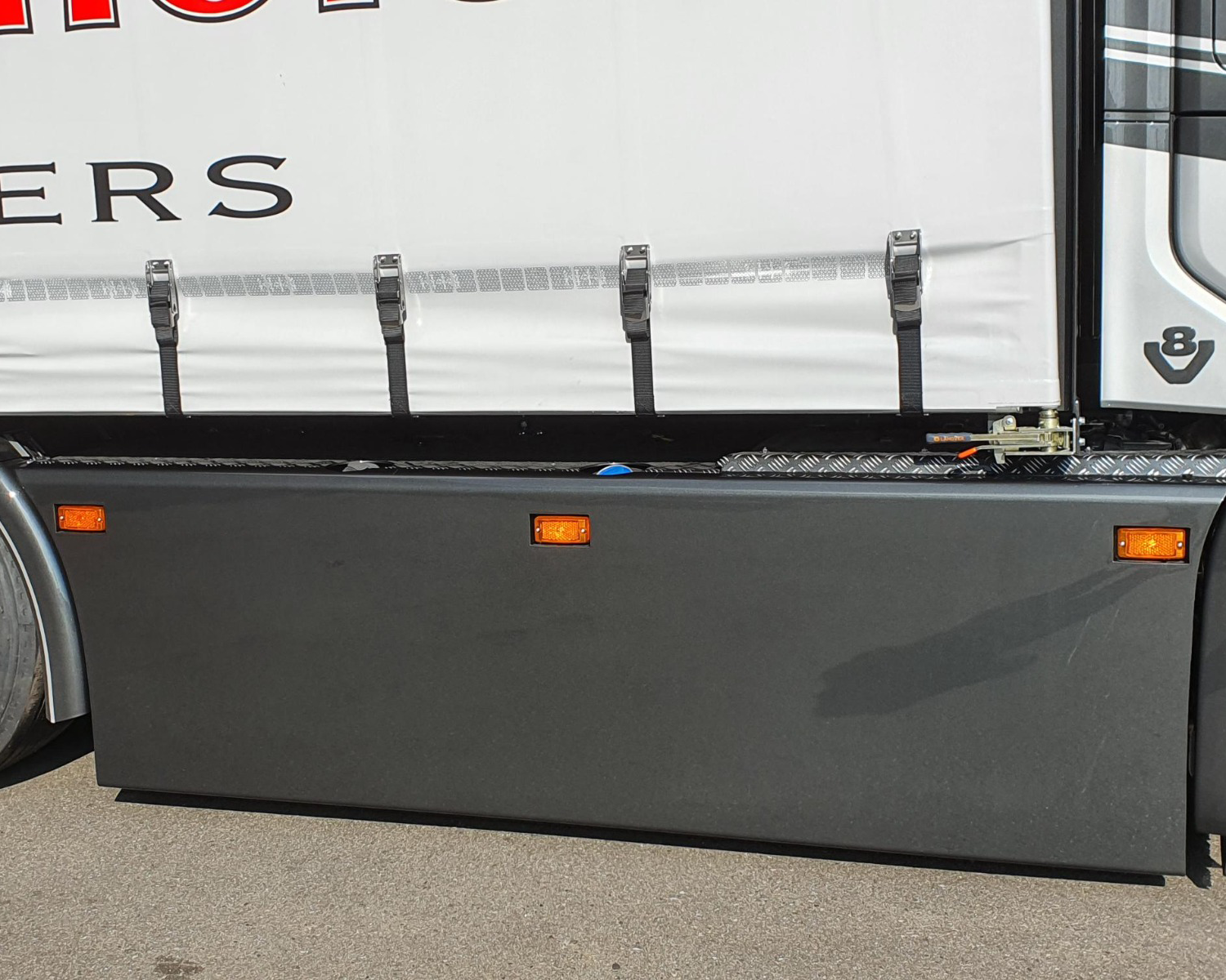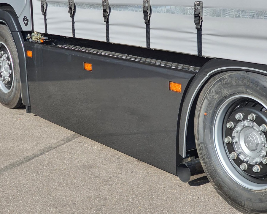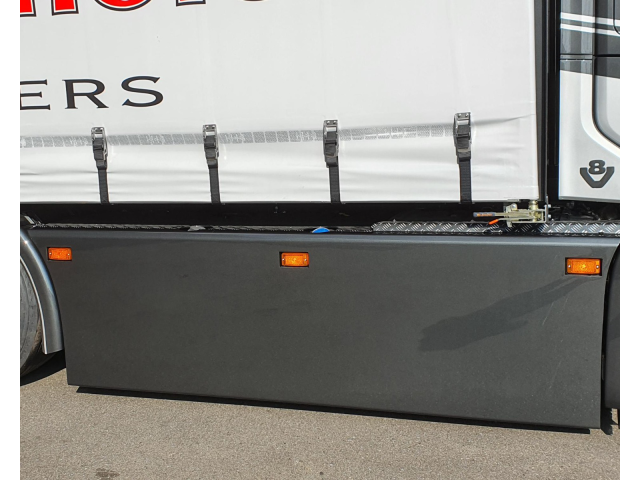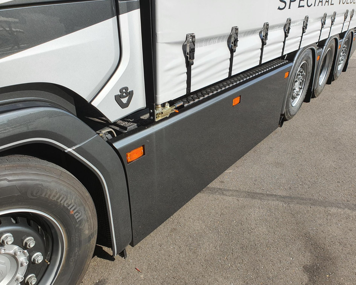 - Klapbare sideskirt op lucht met kisten erachter