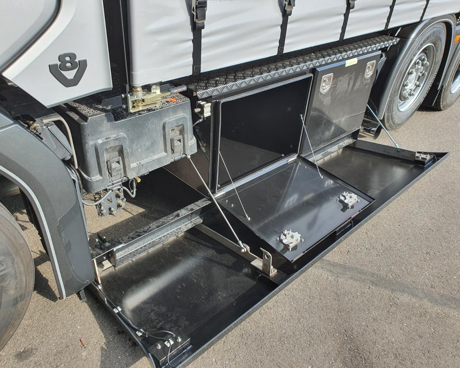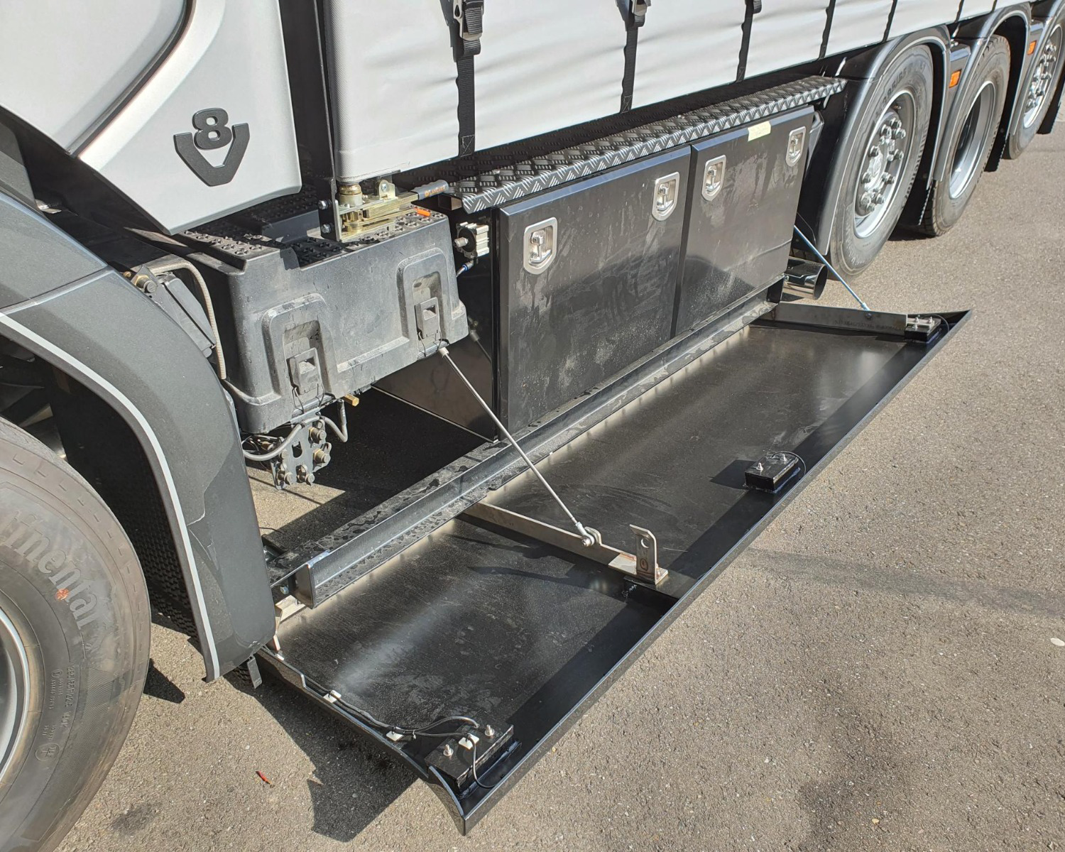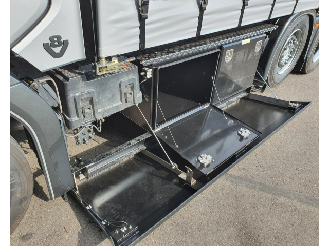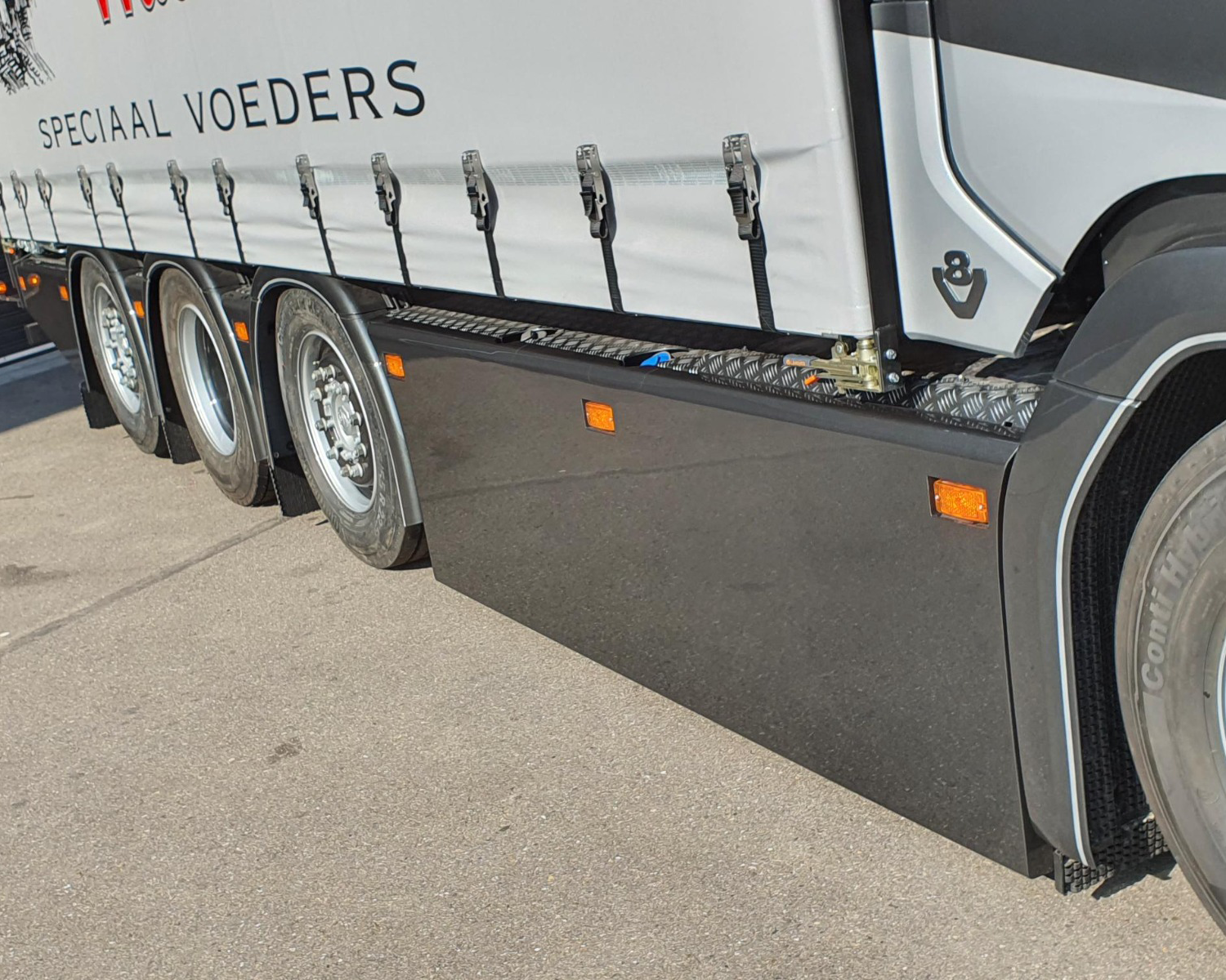 - Klapbare sideskirt op lucht met kisten erachter