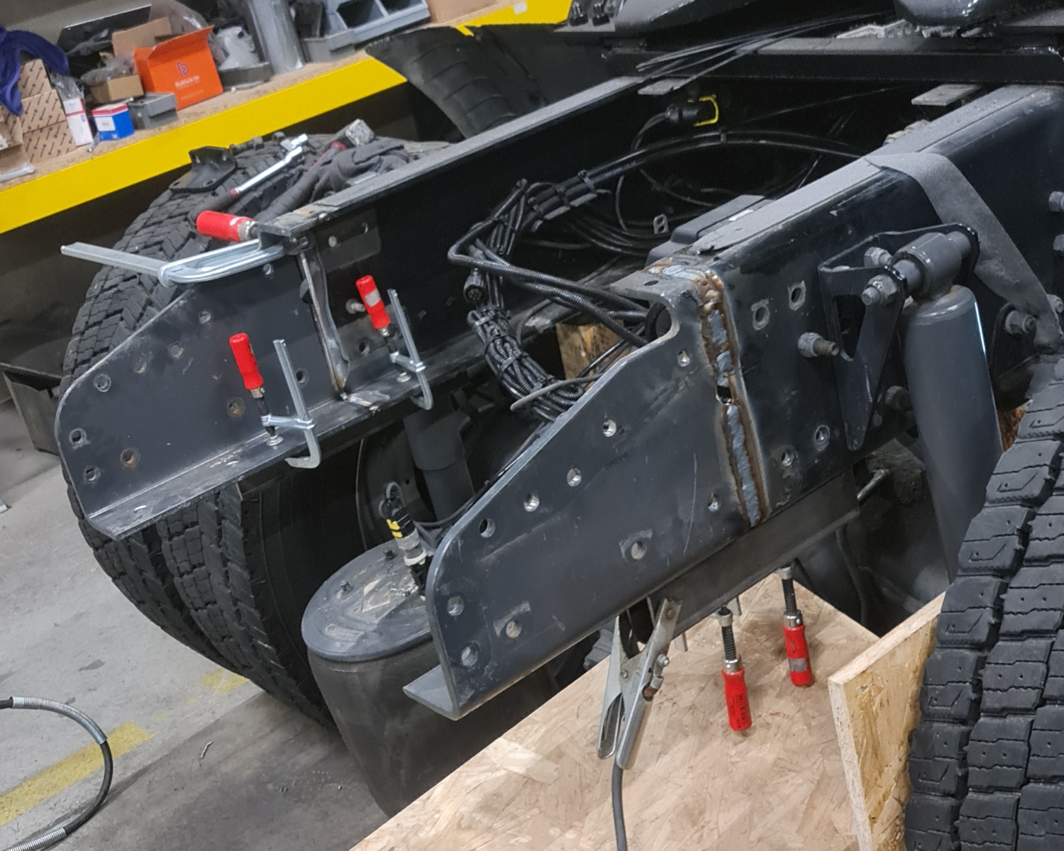 - Chassis omgelast. Eerst waren de accus achter geplaatst, nu rechts in een kist (zie foto's)