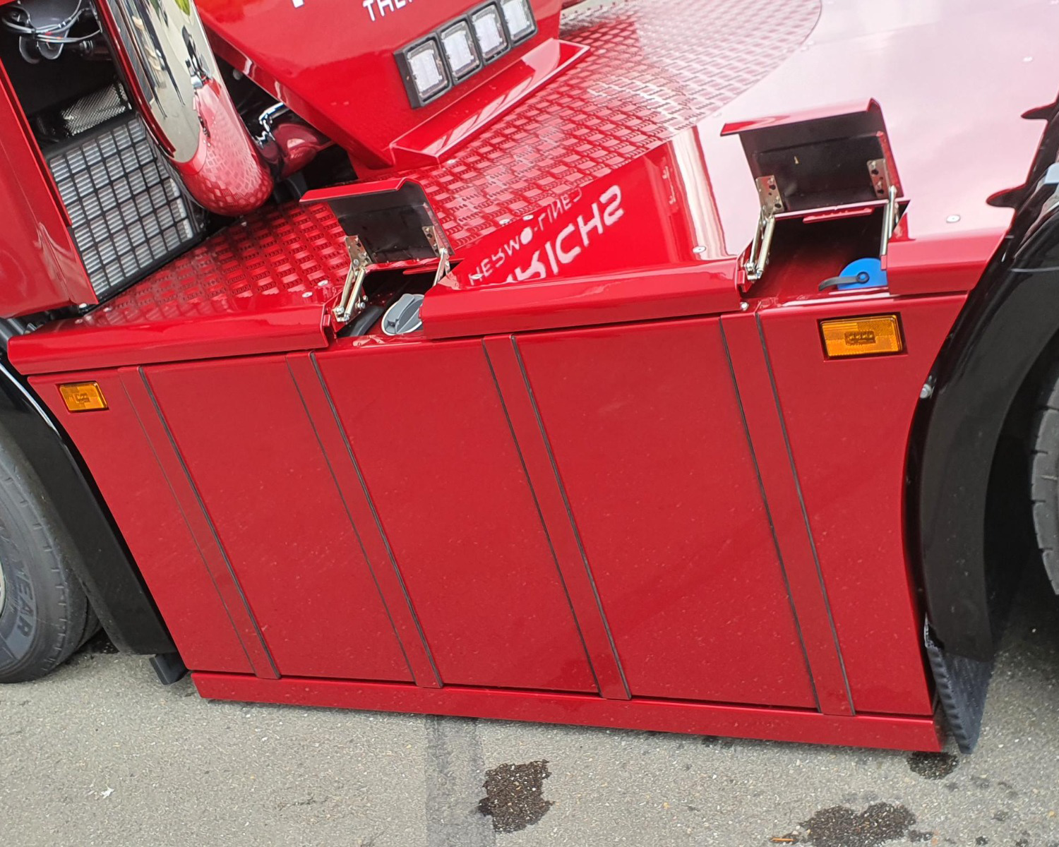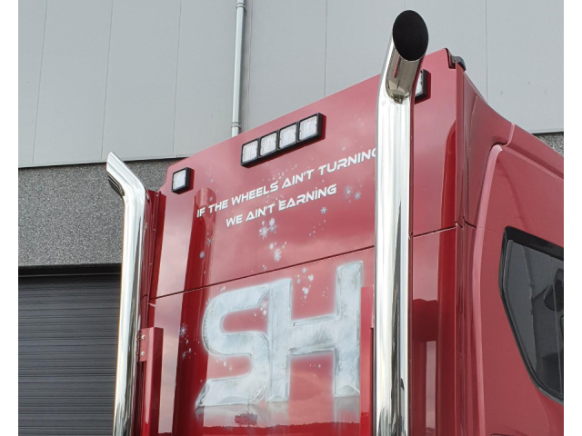 - Slangenrek met staande uitlaten en zijn naam uitgelaserd en verlicht