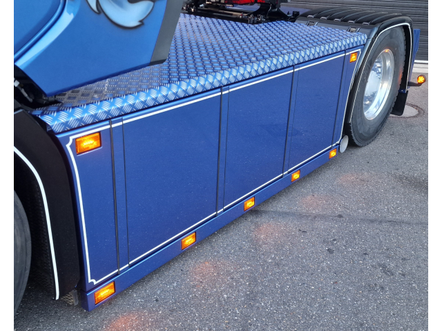 Traanplaatvlonder met klepjes boven die diesel- en adblue tank