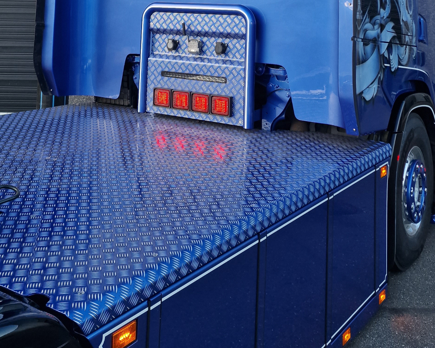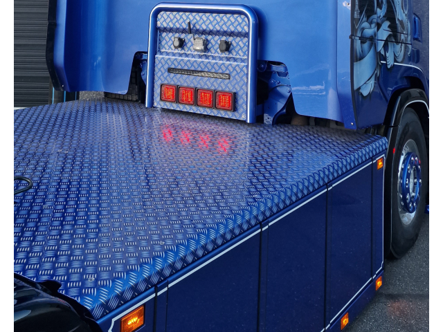 Rvs achterbumper met led lampen en een bakje onder de accu's voor het kenteken