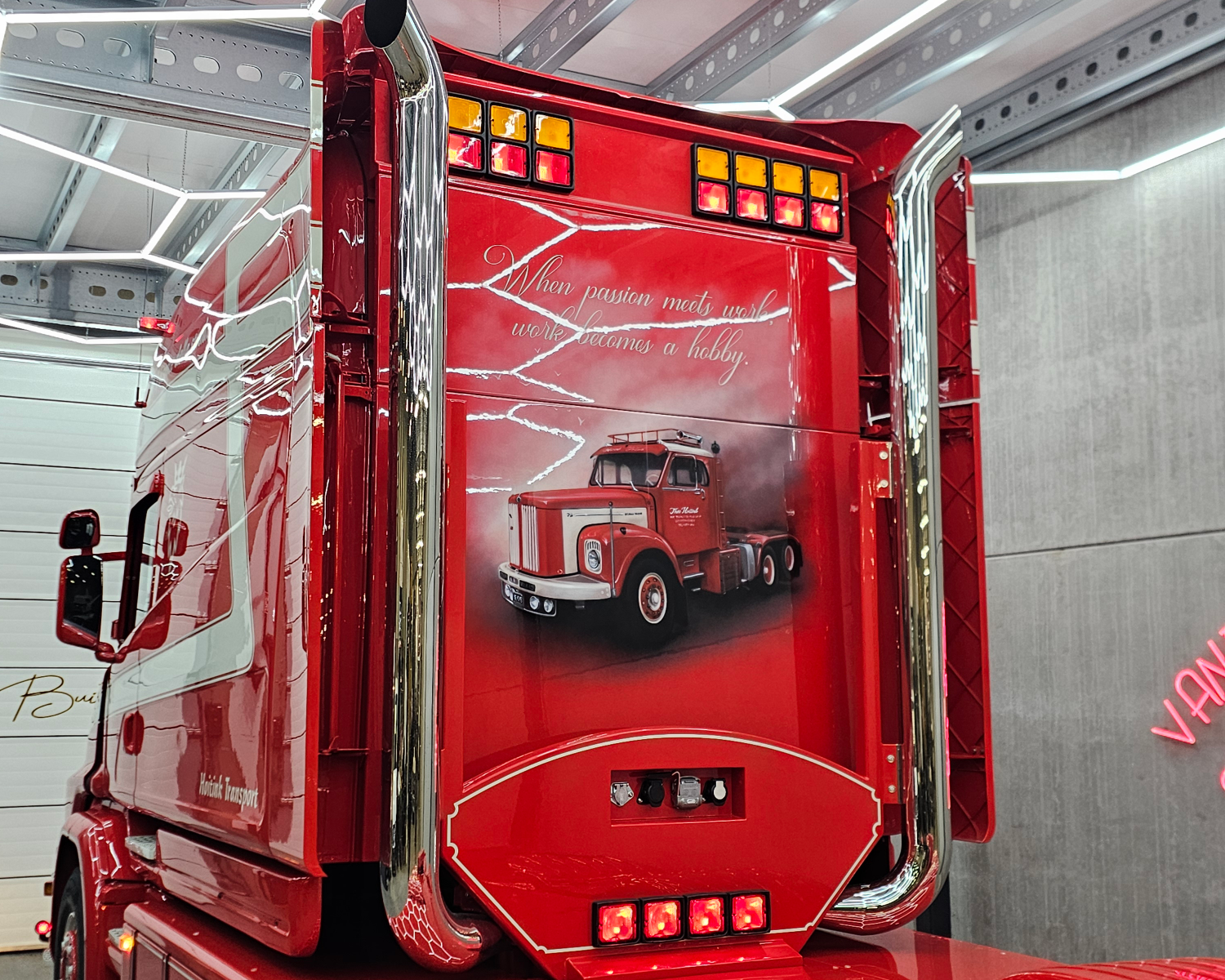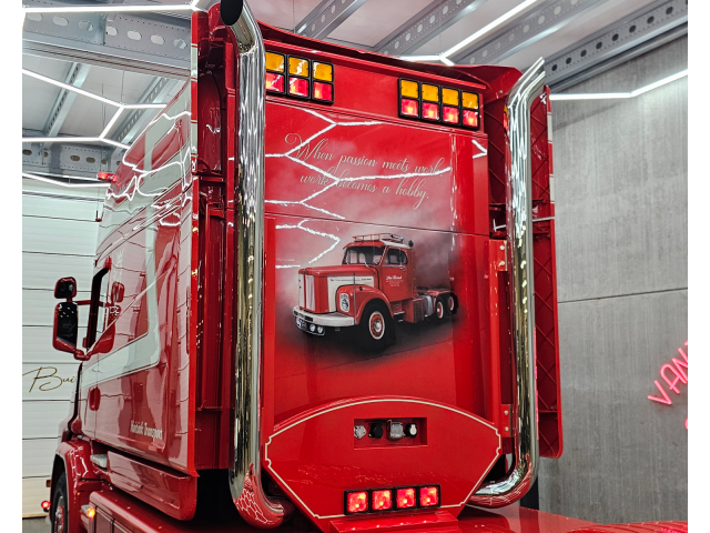 Deze unieke Scania torpedo longline een flinke make-over gegeven voor Walter Hoitink! Van nieuw type voorkant tot een vers gespoten schotel! Walter bedankt voor de opdracht en geniet van deze super dikke wagen!