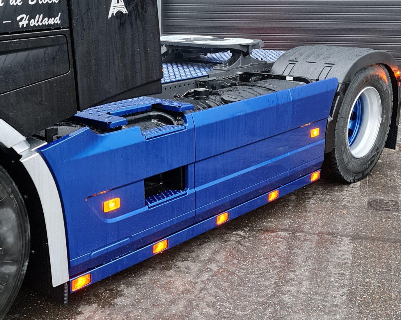 - Traanplaten voor en achter de schotel in het midden van het chassis