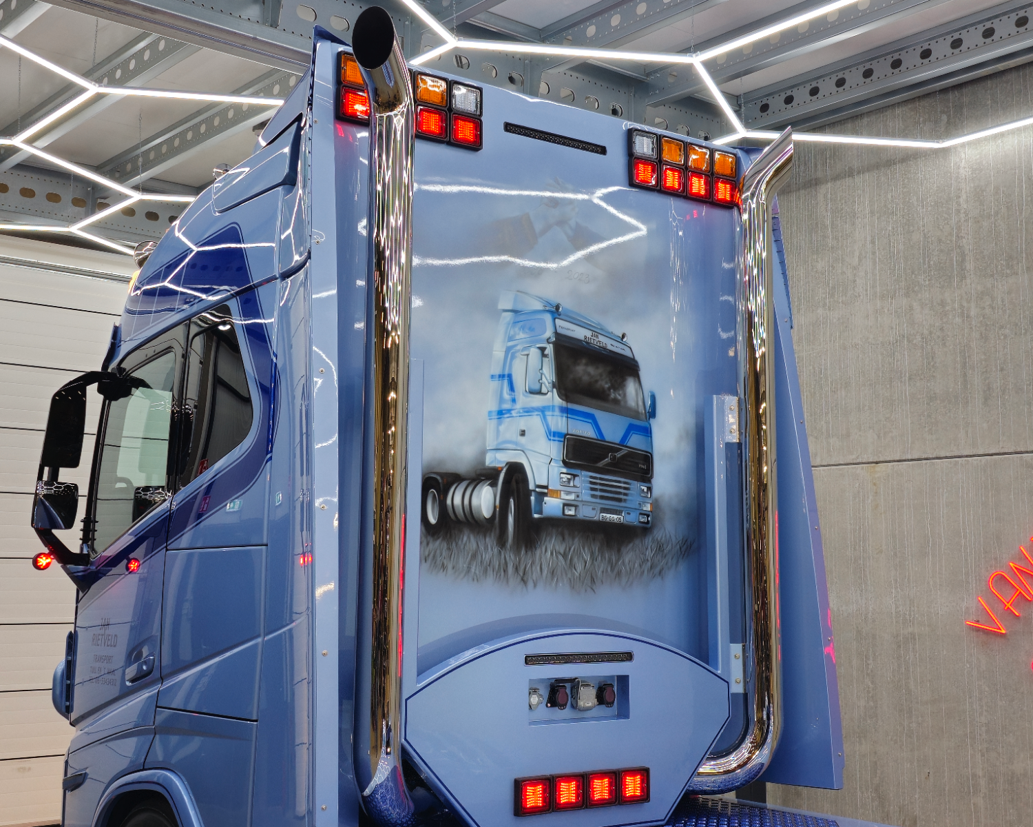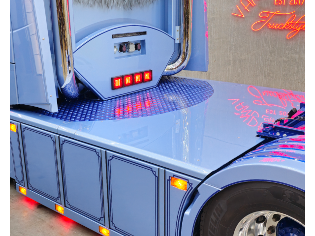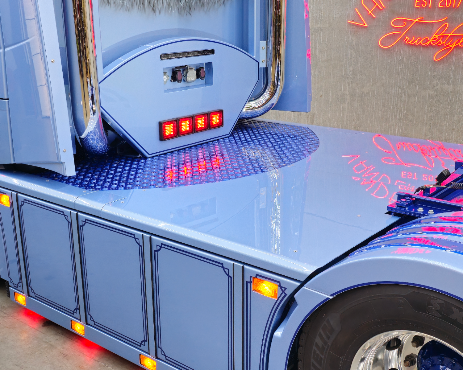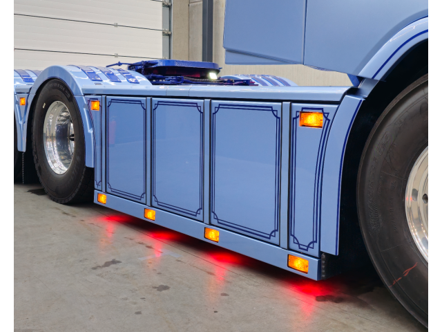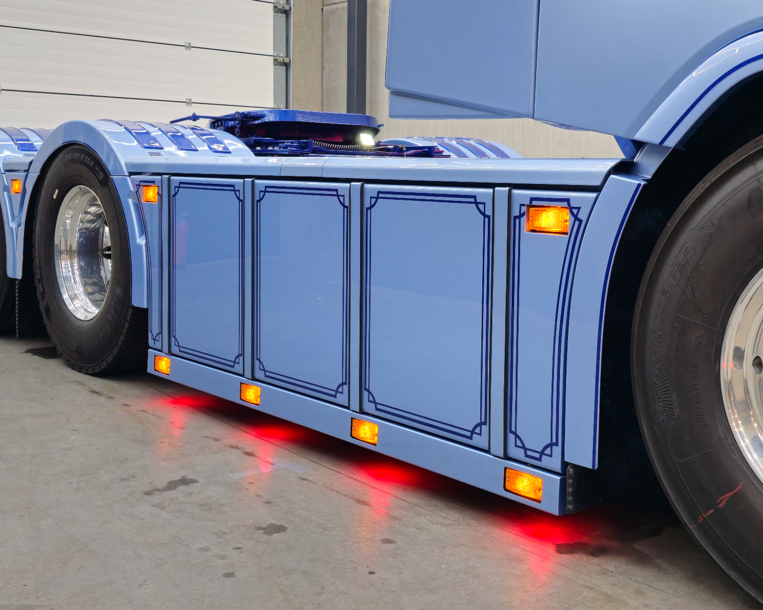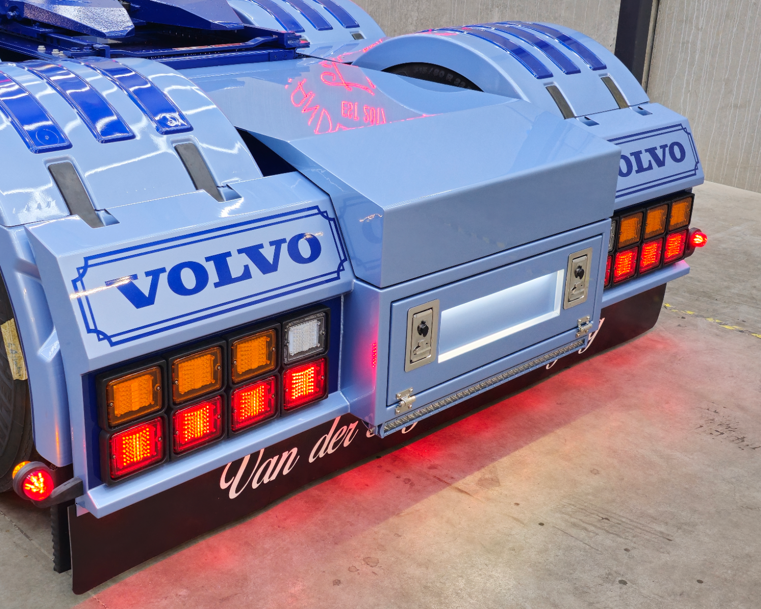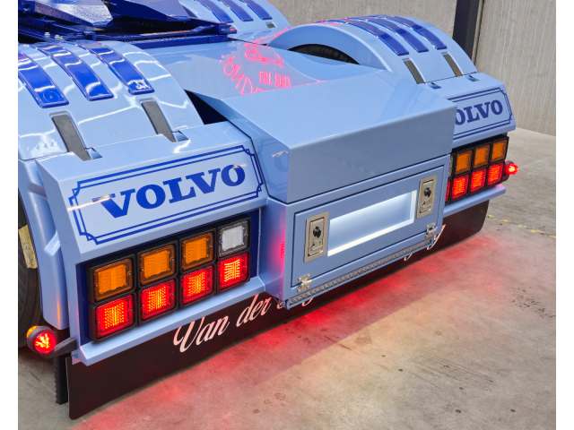 Achterbumper met kist en led verlichting, aansluitend aan spatborden